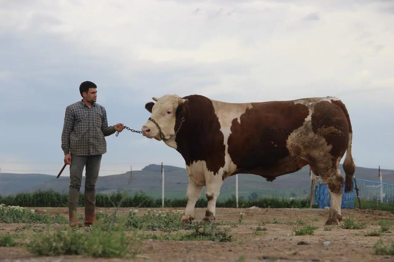 12 yıl önce Fransa'dan gelerek memleketinde hayvancılığa başlayan Yusuf Yücel, "Tosun'un babası Paşa'ydı, bir arkadaştan almıştım. Aşağı yukarı 1,5 sene bizde kaldı. Bin 50 kilo gibi bir ağırlığa çıkarttık. Bu hayvan da onun oğlu, ondan kalma. Aşağı yukarı 34 ay oldu, kendi evimizin malı. Şu an 1 ton 250 kiloyu gördü ama daha gelişiyor çünkü dinamik bir hayvan. İyi bir gelişme yani. Aşağı yukarı 15 ila 20 kilo arası yem yiyor. Bunu biz satışa çıkardık, 370 bin lira gibi bir rakam gördü.