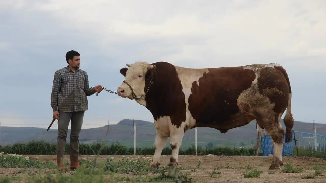 Sivas'ın Altınyayla ilçesinde kurban bayramı için beslenen ve babasının rekorunu geride bırakan dev boğa, fiyatıyla dudak uçuklatıyor.