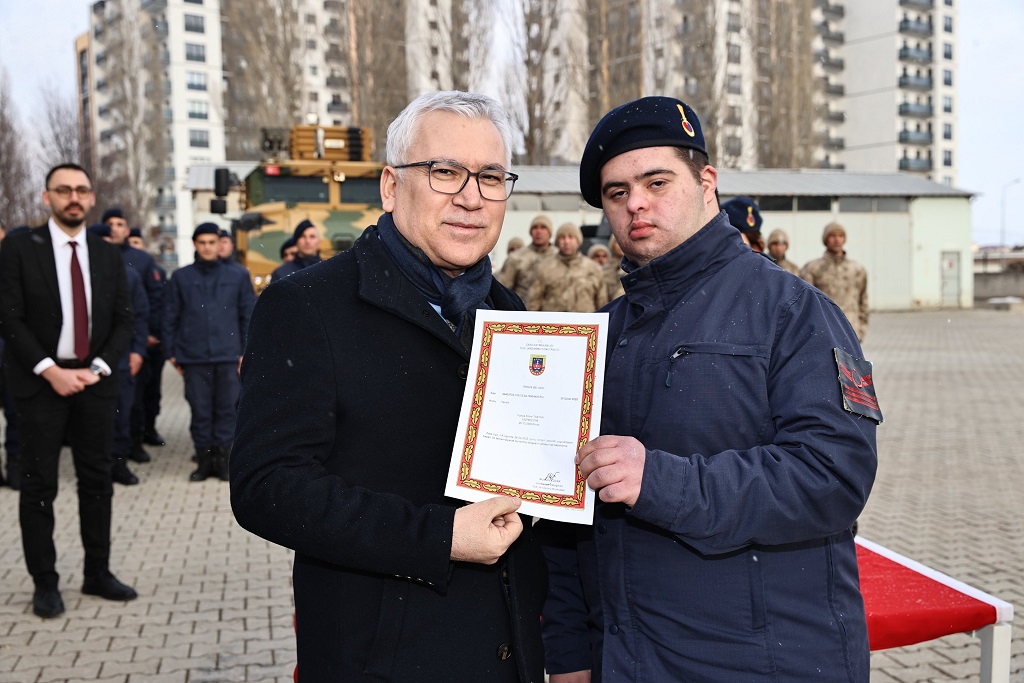 Türk Bayrağı ve silahların üzerine ellerini koyarak yemin eden özel gereksinimli bireyler, bir asker gibi görev başında olduklarını hissetti. Ant içme töreninin ardından, Sivas Valisi Yılmaz Şimşek, bu anlamlı anı taçlandırarak askerlik görevi yapan bireylere terhis belgelerini takdim etti.