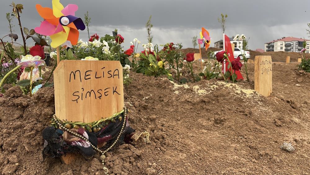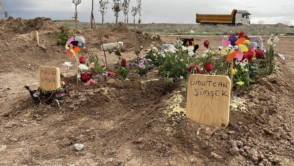 Mezarlıkta gözyaşlarına boğulan acılı anne, yanında getirdiği rengarenk çiçek fidelerini Umutcan ve Melisa'nın mezarlarına tek tek dikti.