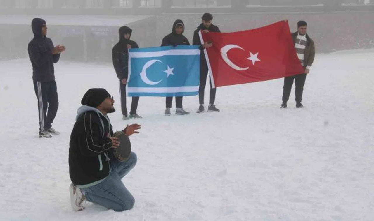 Kayseri'ye kamp için gelen Iraklı Türkmenler, Erciyes'te ilk defa kar görünce türkü söyleyip oyunlar oynayarak gönüllerince eğlendi.