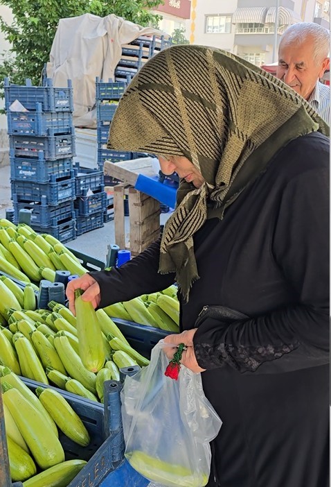 Çocuk yaşlardan itibaren çiftçilikle uğraştığını söyleyen Muhittin Şenel; "Kendimi bildim bileli çeşit sebze yetiştiriyorum. Genelde de pazarda satmak için yetiştiriyorum. Burada yetiştirip pazar yerinde satmaya çalışıyorum. Domates, salatalık, biber, kabak, fasulye çeşitleri var. Bu yılda ilk mahsul çıktığı için pazar yerindeki müşterilerimiz de bizi tanıyorlar. Onlara ilk mahsulü ücretsiz dağıtmak istedik. Meyveyi bu yıl don vurdu. Çok şükür sebze de bir sıkıntı yok. Meyvemiz olmadı ama sebzeye yoğunlaştık. Sebzenin de başına bir iş gelmesin diye ilk mahsulümüzü öşür niyetine dağıtmak istedik" dedi.