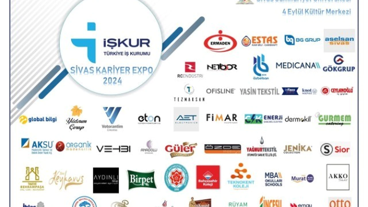 Sivas Cumhuriyet Üniversitesi 4 Eylül Kültür Merkezinde 9-10 Mayıs 2024 tarihlerinde İş ve Meslek Danışmanlığı Hizmetlerinin Geliştirilmesi Projesi kapsamında, öğrenciler, sosyal ortaklar, iş arayanlar ve işverenlerin katılımı ile İŞKUR Sivas Kariyer Expo 2024 düzenlenecek.