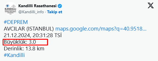 İstanbul'un Avcılar ilçesi, dün akşam saatlerinde 3.0 büyüklüğünde bir depremle sarsıldı. Akşam saatlerinde  meydana gelen deprem, İstanbul'un birçok ilçesinde hissedildi ve kısa süreli paniğe neden oldu.