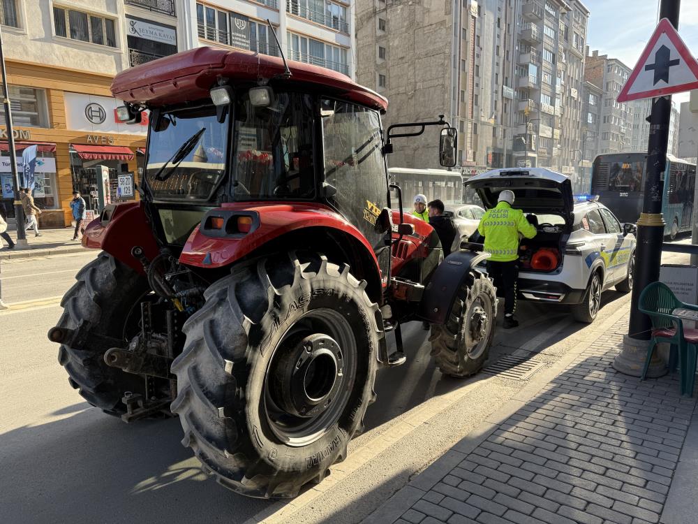 Sivas'ta ehliyetsiz traktör sürücüsü, sigortası ve muayenesi bulunmayan traktörle kentin en işlek caddesine girdi. Polis ekiplerince durdurulan sürücüye 4 farklı maddeden 41 bin 507 TL para cezası kesildi.
