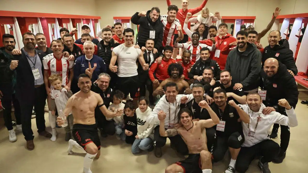 Sivassporlu futbolcular, Göztepe karşılaşmanın ardından soyunma odasında galibiyet pozu verdi.