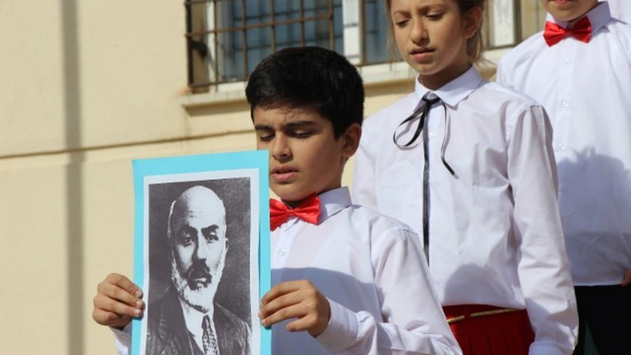Kahramanmaraş'ta İstiklal Marşı'nın kabulünün 103. yıldönümü öğrenciler tarafından kutlandı.