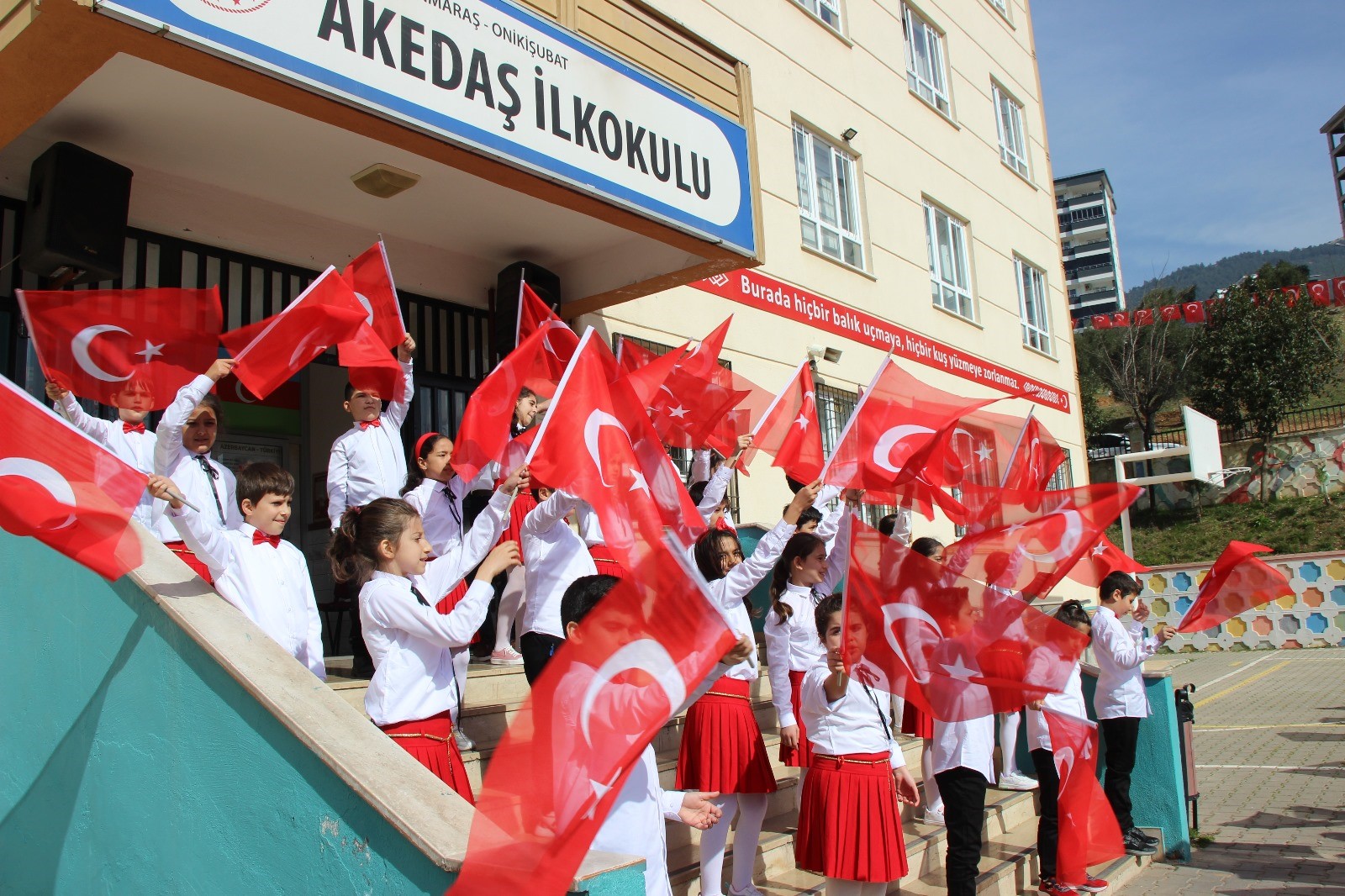 Onikişubat ilçesinde Akedaş İlkokulu'nda minik öğrenciler, öğretmenleri ile birlikte hazırladıkları program ile İstiklal Marşı'nın kabulünün 103. Yıldönümünü coşkulu bir programla kutladı.
