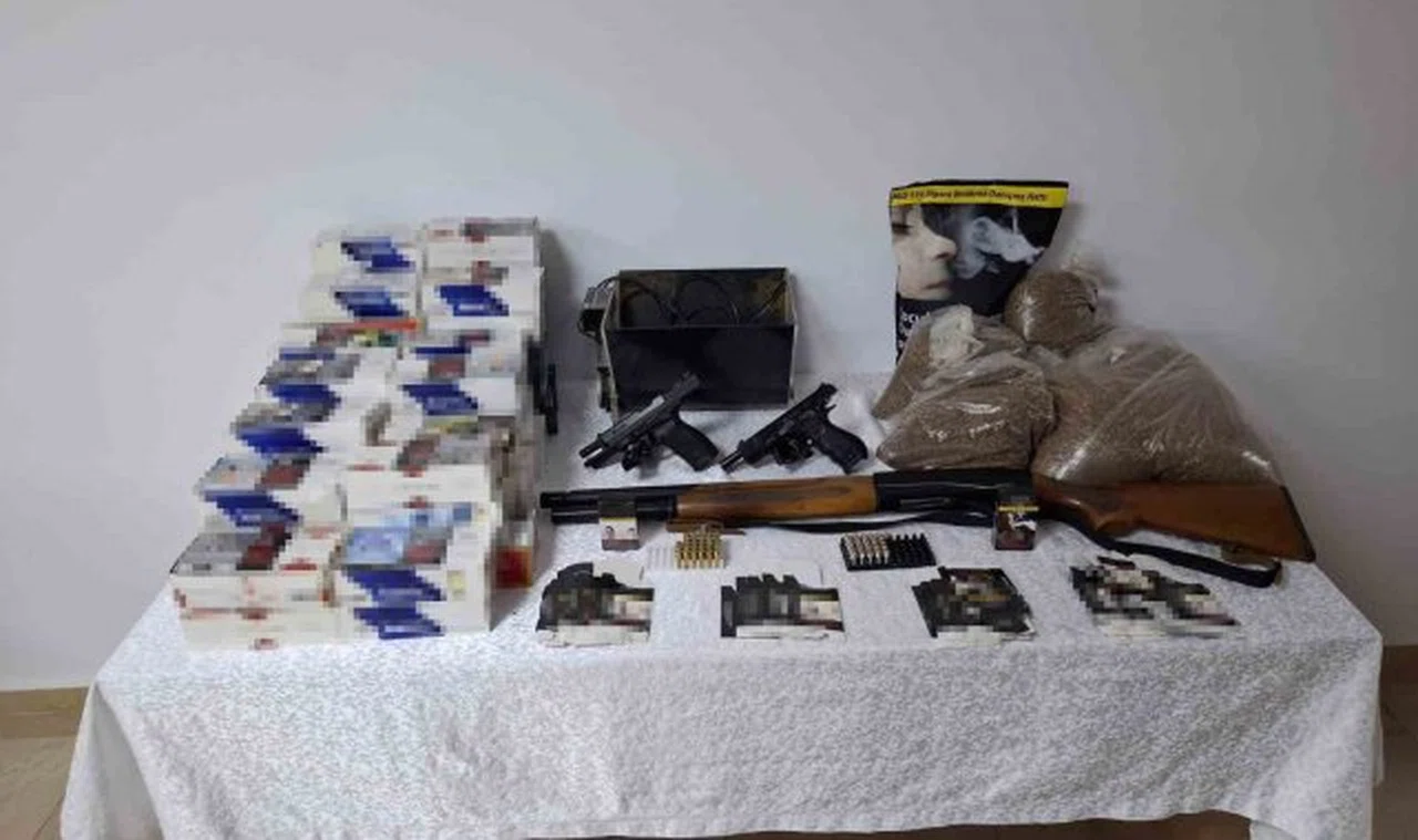 Zile İlçe Jandarma Komutanlığı ekipleri, ihbar üzerine T.E'nin (48) evine yaptığı operasyonda 1 adet 9 mm çapında ruhsatsız tabanca, 2 tabanca şarjörü, 1 ruhsatsız otomatik av tüfeği, 1 ruhsatsız kurusıkı tabanca, 28 adet tabanca fişeği, 8 kilogram kıyılmış tütün, 2 bin 400 adet dolu makaron, 6 bin 600 adet boş makaron ve bir elektrikli tütün sarma makinesi ele geçirdi. Jandarma ekipleri tarafından gözaltına alınan T. E., ifadesinin alınmasının ardından adliyeye sevk edildi.