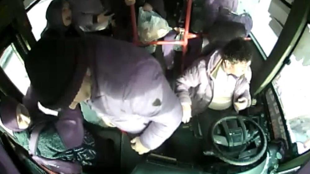 Otobüsün şoförü ve yolcular, saldırganlardan zarar görmeden kurtulmayı başarırken yaşanan saldırı anları otobüsün güvenlik kamerasına yansıdı.