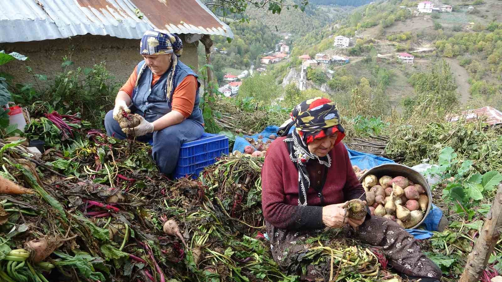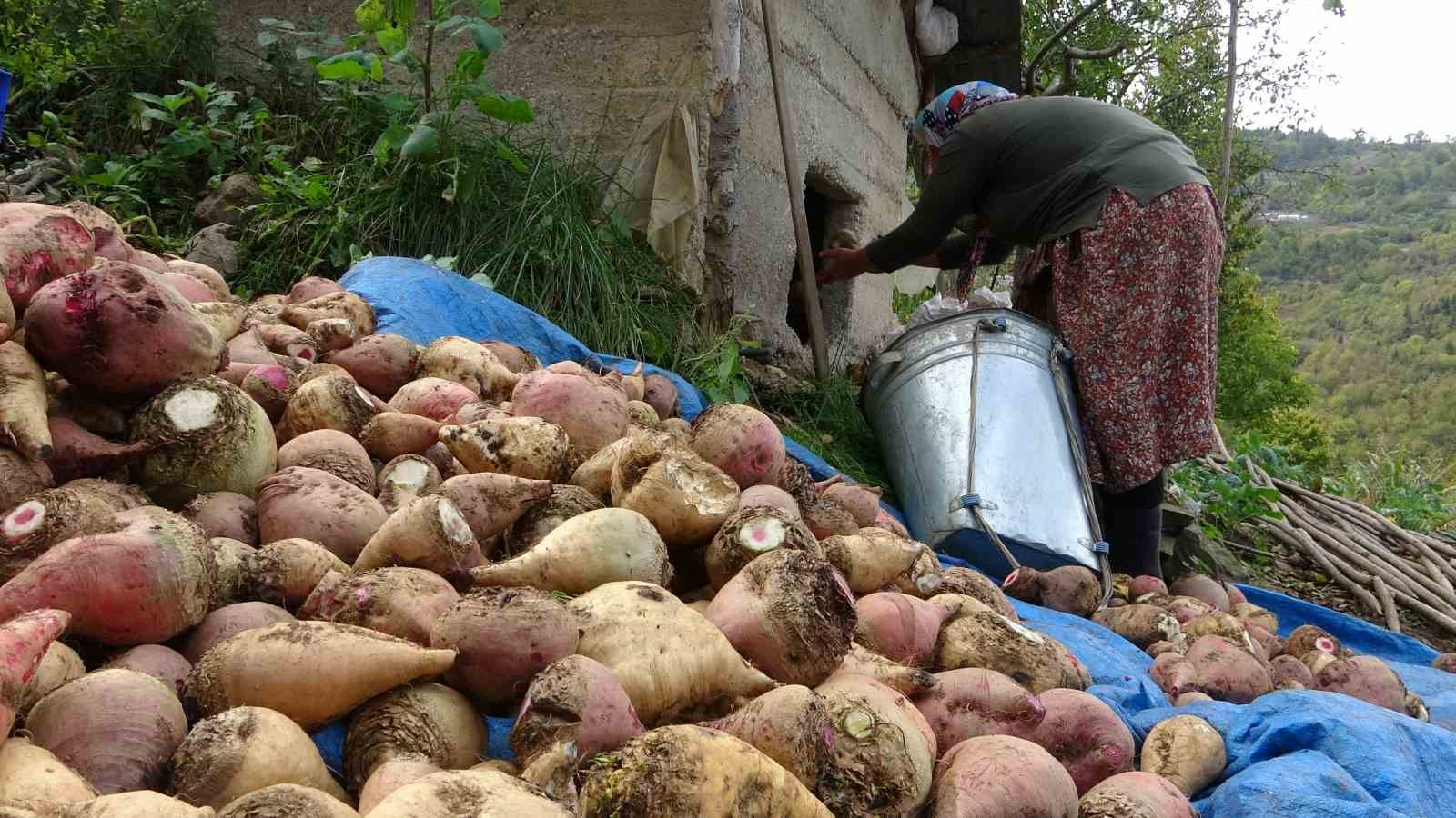 Yaz mevsiminde tarlalarında yetiştirdikleri ürünleri değerlendiren köylüler, peziğin sapından turşu, kökünden ise depolama alanlarında saklayarak kış hazırlığı yapıyor. Elma ve armutları da pekmez yapmak için kullanan kadınlar, geleneksel yöntemlerle kışlık yiyeceklerini hazırlıyor.