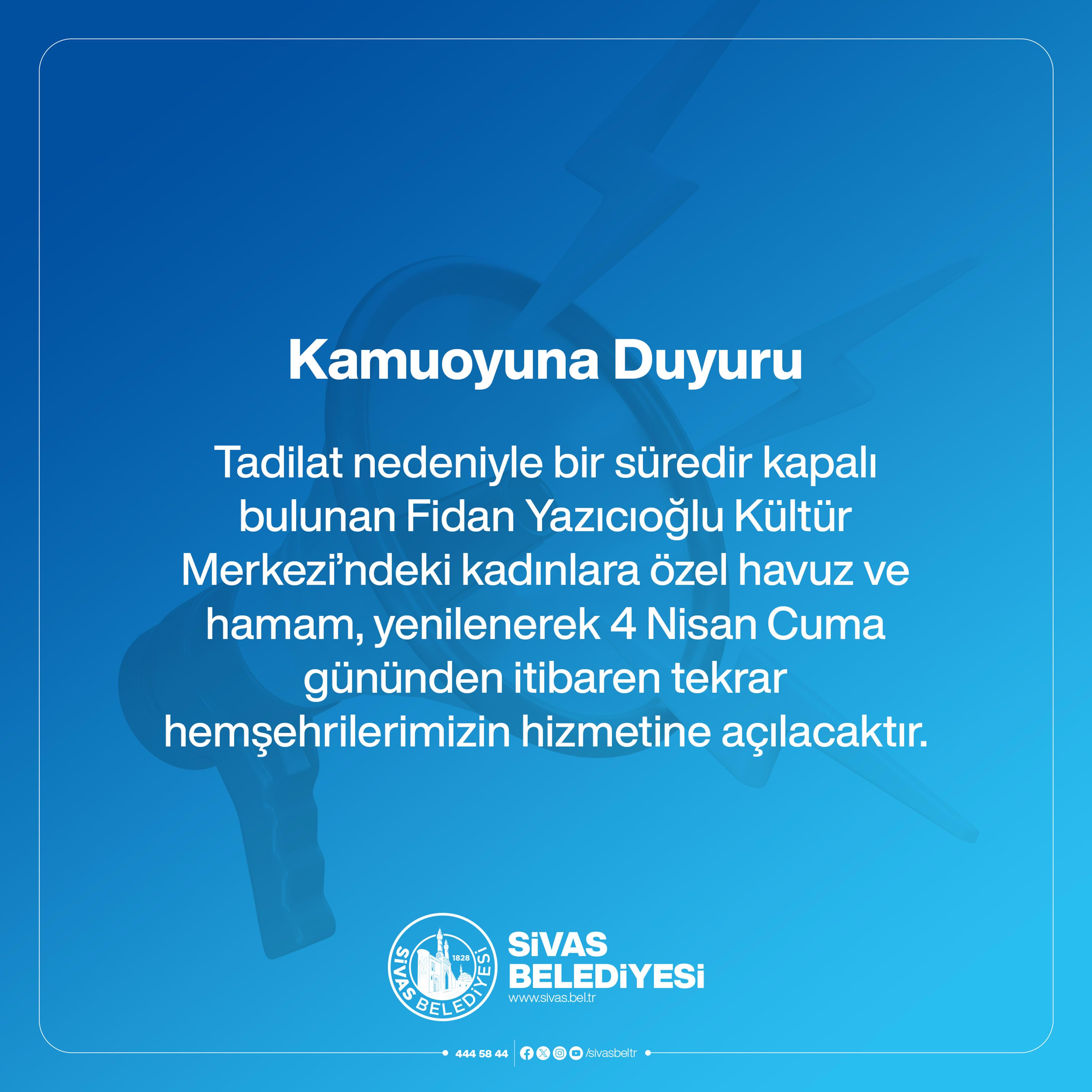 Yapılan açıklamada, tesisin 4 Nisan Cuma gününden itibaren yeniden kullanılabileceği belirtildi. Kadınların rahatça vakit geçirebileceği ve sağlıklı yaşamlarına katkı sağlayacak şekilde düzenlenen tesis, modernize edilmiş alanlarıyla misafirlerini ağırlamaya hazırlanıyor.