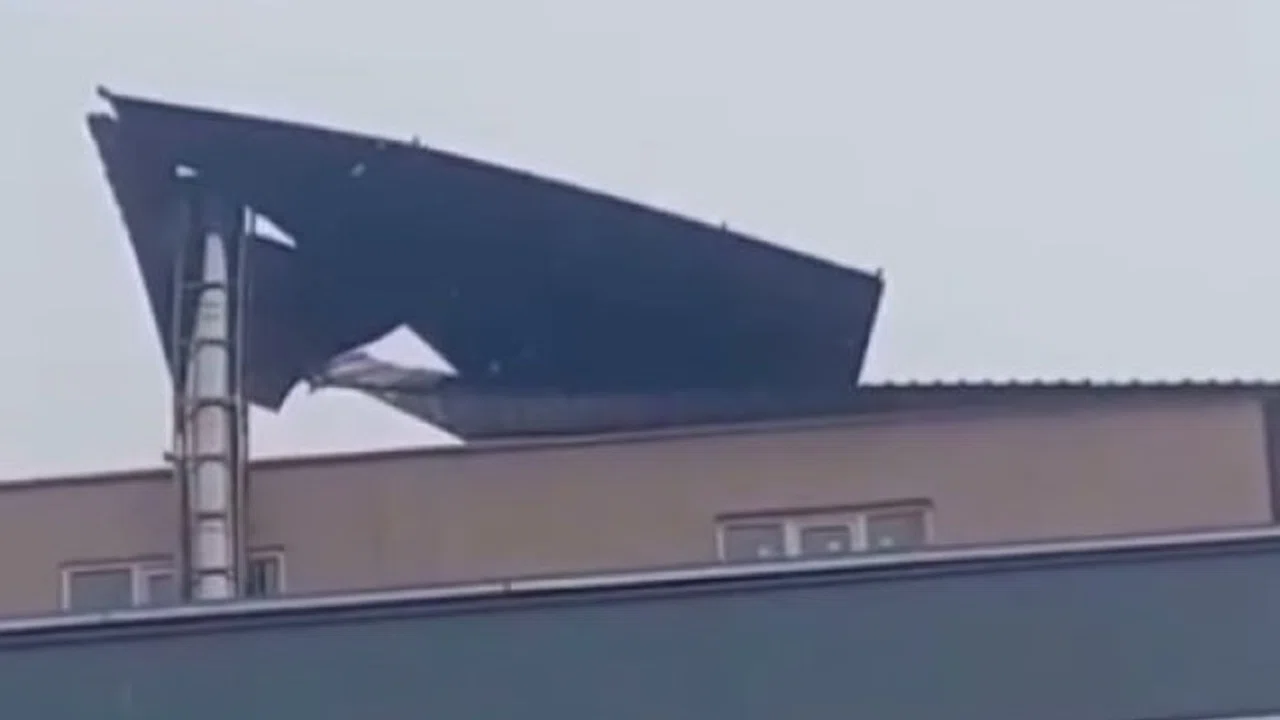 Kahramanmaraş'ta etkili olan şiddetli fırtına, 7 katlı bir binanın çatısını yerinden söktü. Aşağı uçan apartman çatısı araçların bulunduğu yola düştü.