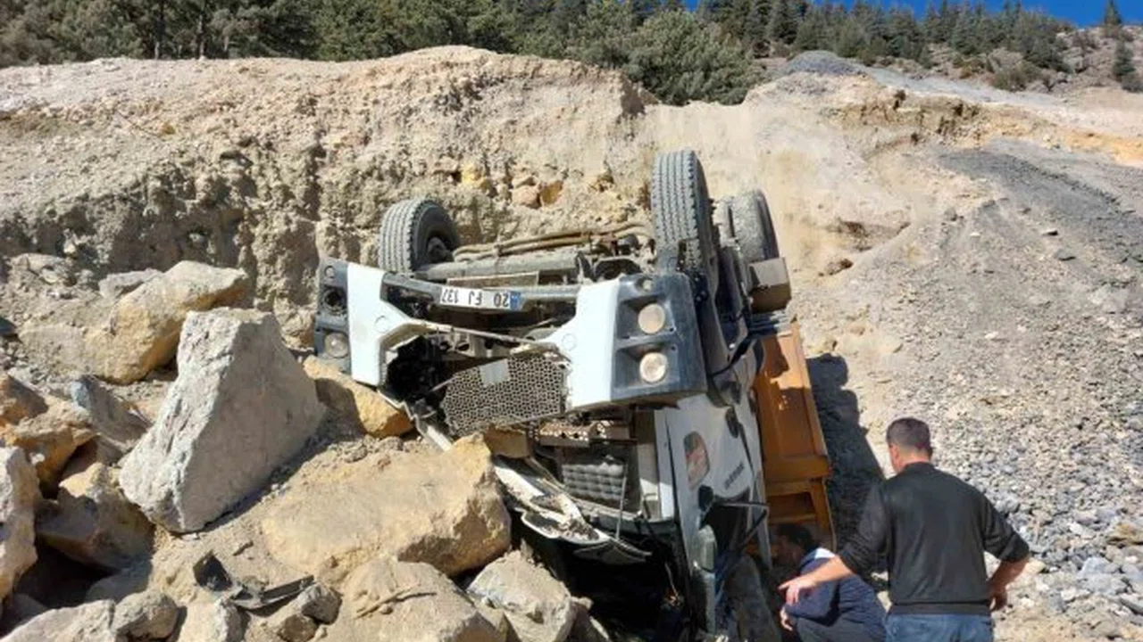 Kahramanmaraş'ta hafriyat kamyonunun devrilmesi sonucu sürücüsü yaralandı.