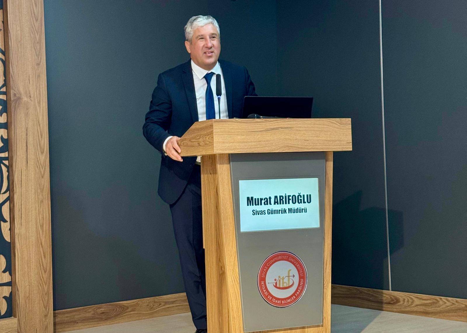 Sivas Gümrük Müdürü Murat Arifoğlu, Uluslararası Ticaret ve Lojistik Bölümü öğrencilerine yönelik gerçekleştirdiği sunumda, gümrük idaresinin karmaşık ve dinamik işleyişi hakkında detaylı bilgiler paylaştı.
