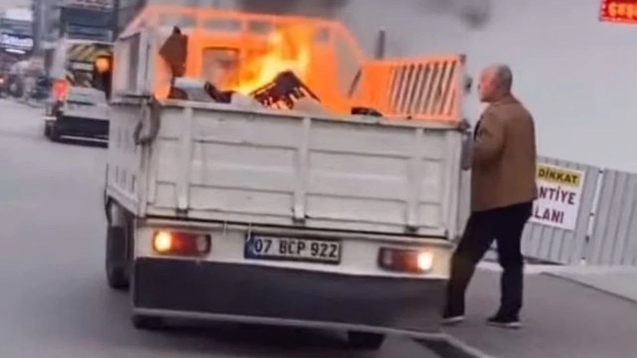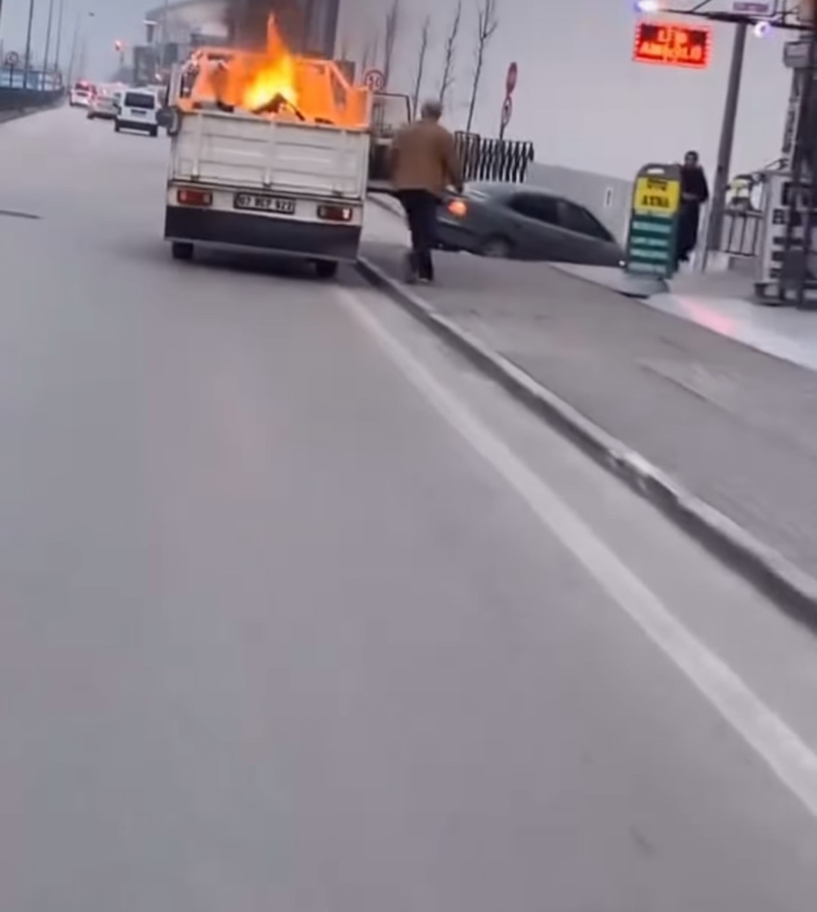 Kısa sürede büyüyen alevler kamyonetin kasasına yayılırken, durumu fark eden sürücü aracını hemen sağa çekti. Yangın tüpüyle müdahale edilen yangın faciaya yol açmadan söndürüldü. Olayla ilgili tahkikat başlatıldı.
