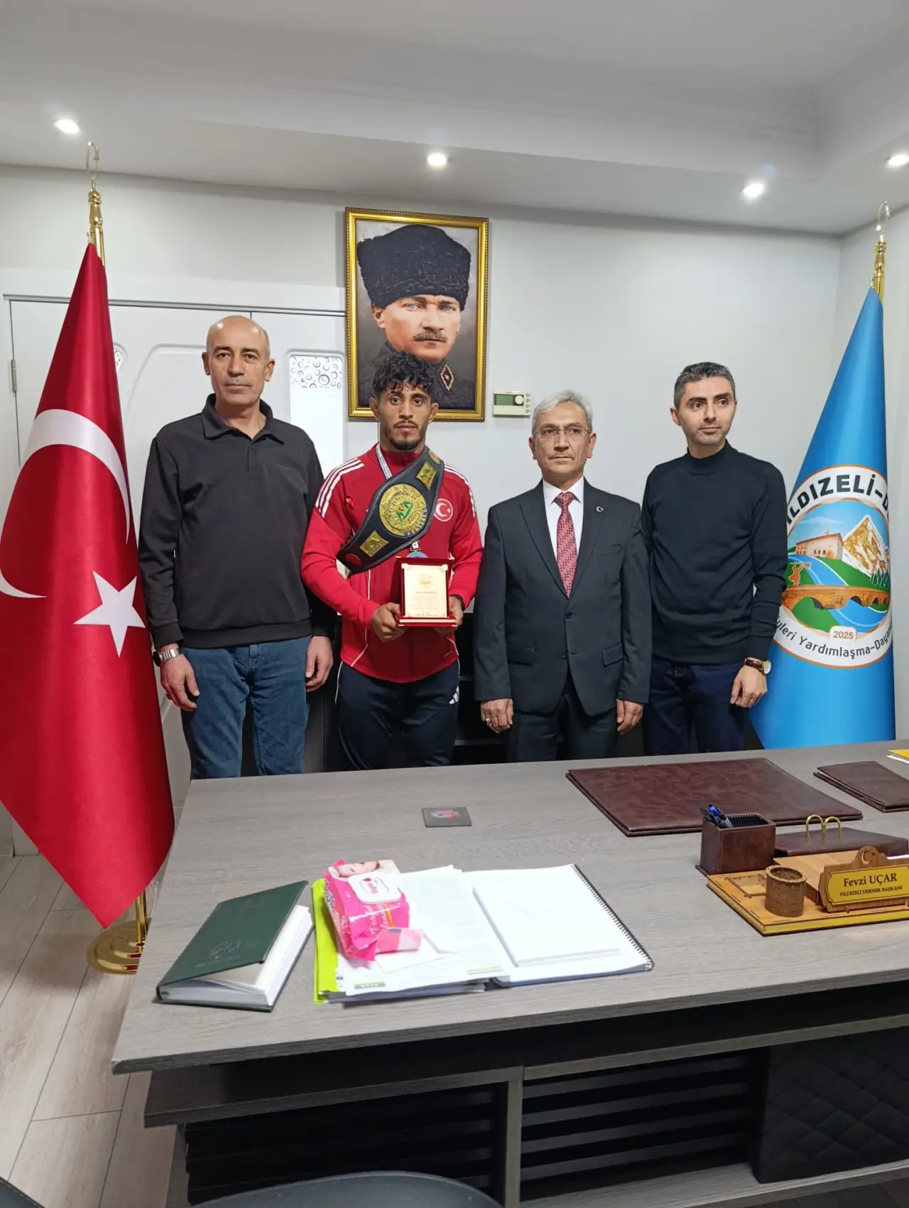 Bu tarihi başarının hemen ardından, şampiyon güreşçi Coşkun Keleş, başarısının gururunu ve sevincini paylaşmak için kendisini her zaman destekleyen hemşerilerini unutmadı. Yıldızeli Derneği'ne sürpriz bir ziyaret gerçekleştiren Keleş, burada Dernek Başkanı Fevzi Uçar ve çok sayıda dernek üyesi tarafından coşkuyla karşılandı. Samimi bir atmosferde gerçekleşen ziyarette Keleş, şampiyonluk sürecini ve yaşadığı mutluluğu paylaştı.
