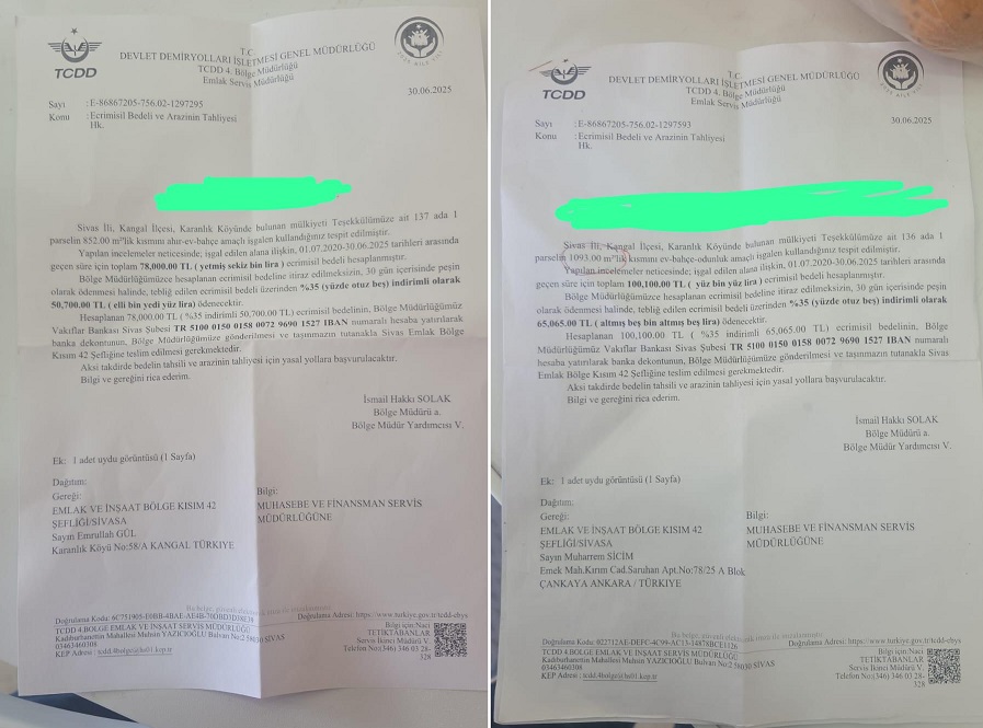 Kurumun zararı her geçen gün katlanırken, TCDD Ankara-Kars demiryolu güzergahı üzerinde bulunan Kangal ilçesinde hat üzerinde bulunan köylülere 90 yıl geriye dönük ecrimisil tahakkukları yapmaya başladı. Köylüler bugüne kadar böyle bir uygulama ile karşılaşmadığını, yine aynı hat üzerinde okul, sulama müştemilatı gibi alanların da bulunduğunu belirtirken, yüksek bedellerin ödenmesi konusunda büyük mağduriyet yaşamaya başladı.