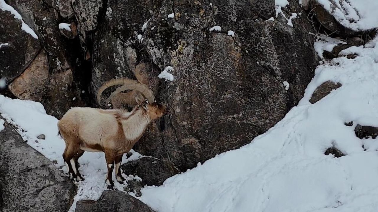 Kış şartlarının etkisini iyice artırmasıyla birlikte Aladağlar'ın sarp yamaçları bembeyaz bir örtüyle kaplandı. Bu zorlu coğrafyada hayatta kalmaya çalışan dağ keçileri, dondurucu soğuklara rağmen sarp kayalıklardaki ustalıklarını sergilemeye devam ediyor. Karın altından yiyecek bulma çabaları ve saniyeler içinde dik yamaçları tırmanmaları, doğanın ne kadar sert ama bir o kadar da hayranlık uyandırıcı olduğunu bir kez daha kanıtlıyor. Yüksek kesimlerde artan kar kalınlığı, bu asil hayvanları daha aşağı bölgelere inmeye zorluyor.