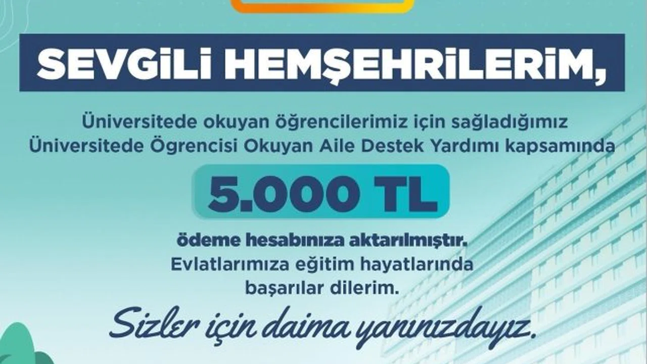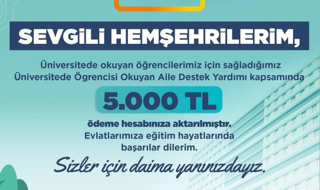 Büyükşehir Belediyesi'nin Üniversitede Öğrencisi Okuyan Aile Destek Yardımı kapsamındaki toplam ödeme miktarı 2022-2023, 2023-2024 ve 2024-2025 eğitim yıllarını kapsayarak 25 milyon 972 bin TL'ye oldu. Üniversitede Öğrencisi Okuyan Aile Destek Yardımı ile Kayseri Büyükşehir Belediyesi, üniversite öğrencilerinin eğitim süreçlerini kolaylaştırırken, toplumun her kesiminden öğrencilerin eğitim hayatlarına eşit şekilde katkı sağlamaya gayret gösteriyor.
