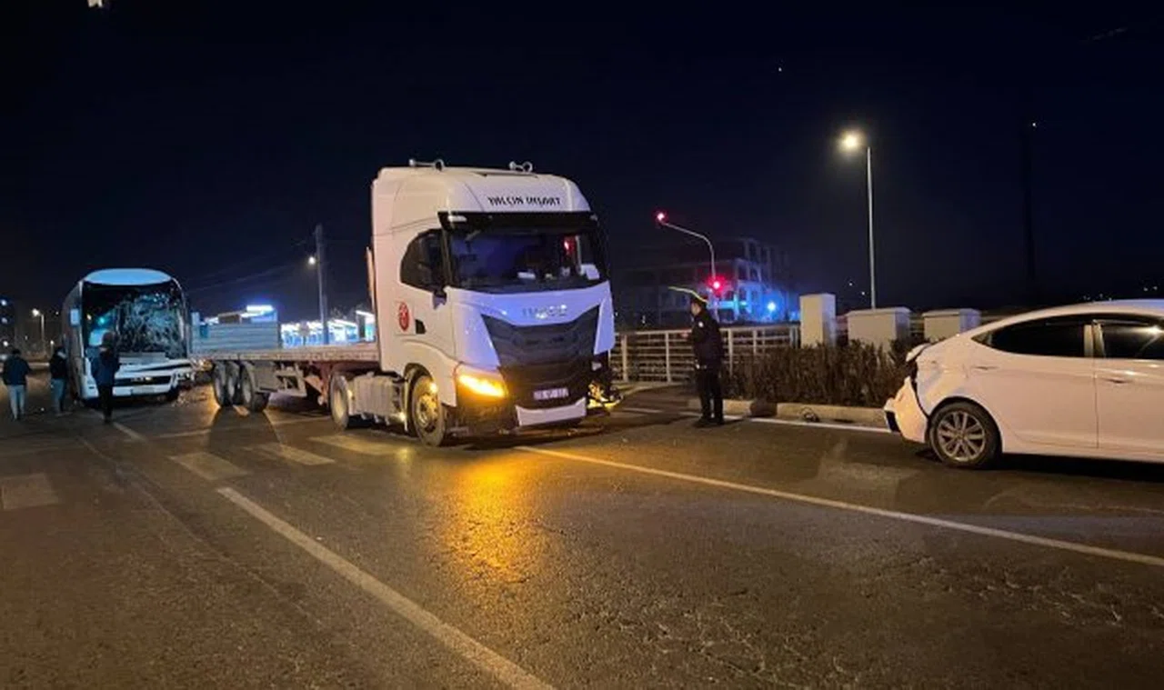 Kayseri'nin Kocasinan ilçesinde yolcu otobüsü, tır ve otomobilin karıştığı zincirleme trafik kazasında 2 kişi yaralandı.