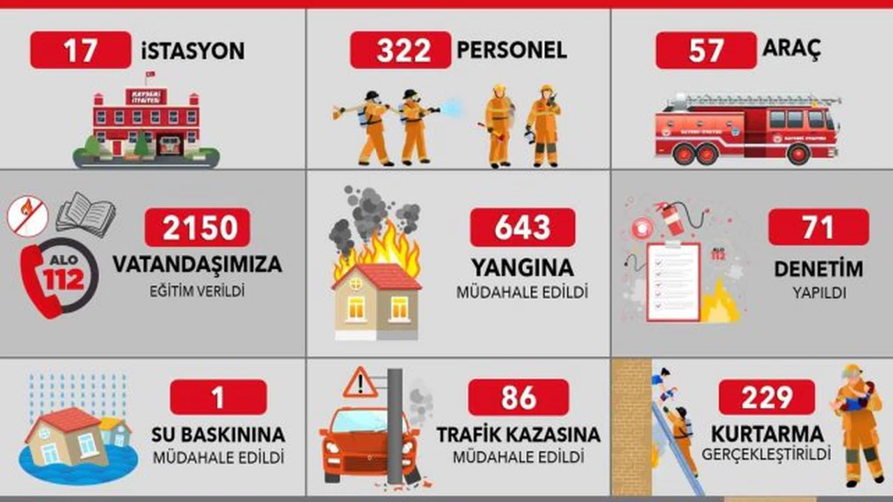 Doğal afet, yangın, kaza, arama kurtarma gibi sorumluluk alanına giren her konuda tüm canlıların imdadına koşan Kayseri Büyükşehir Belediyesi İtfaiye Daire Başkanlığı ekipleri, 1 ayda 959 olaya müdahale ederken, 2 bin 150 eğitim ve 71 denetim gerçekleştirdi.
