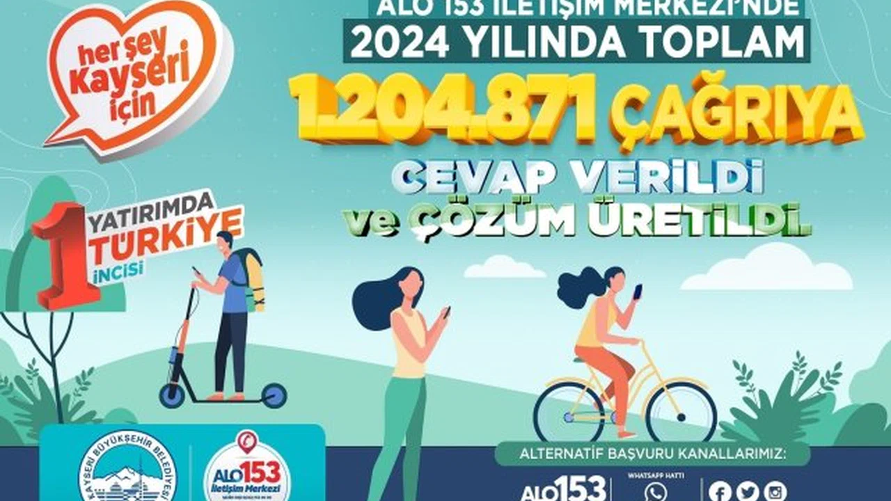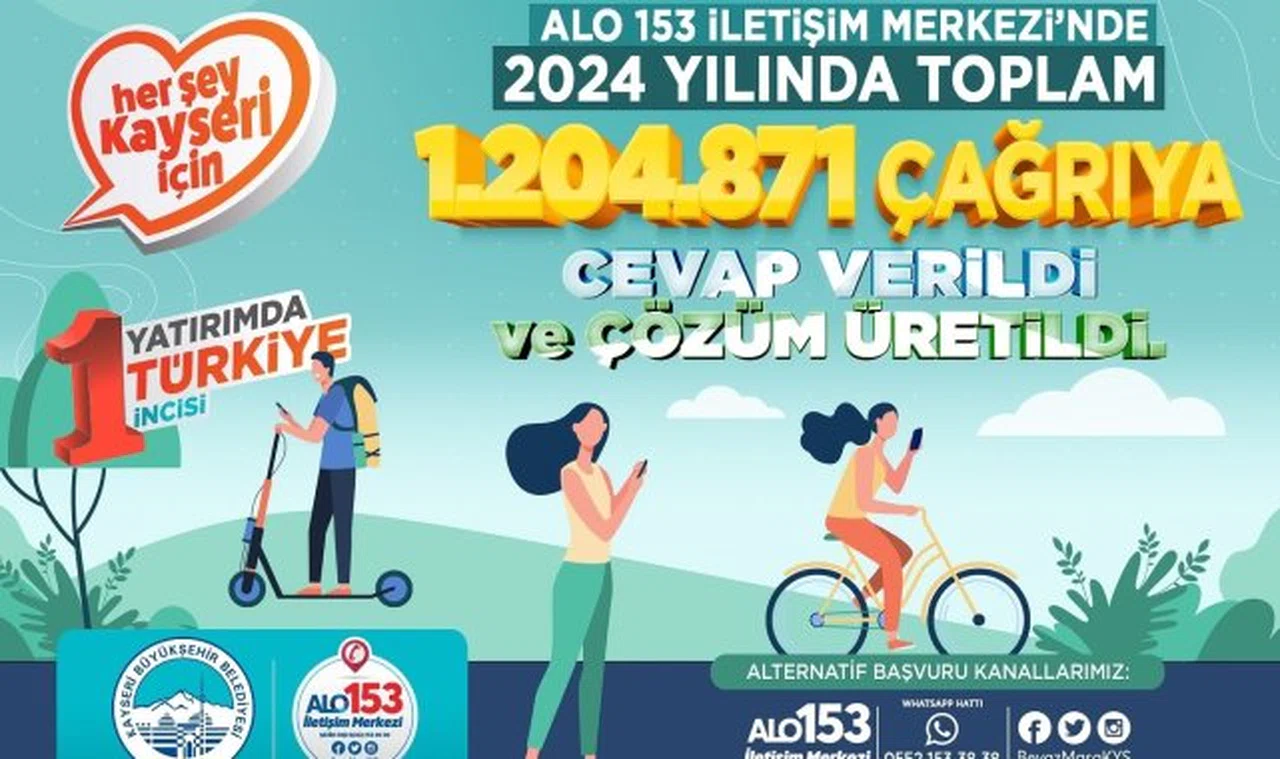 Kayseri Büyükşehir Belediyesi'nin Alo 153 İletişim Merkezi, 2024 yılında 1 milyon 205 bin 94 çağrıya cevap verip, vatandaşların taleplerini anında çözüme kavuşturarak, yerel yönetim ile vatandaşlar arasında köprü görevini sürdürdü.