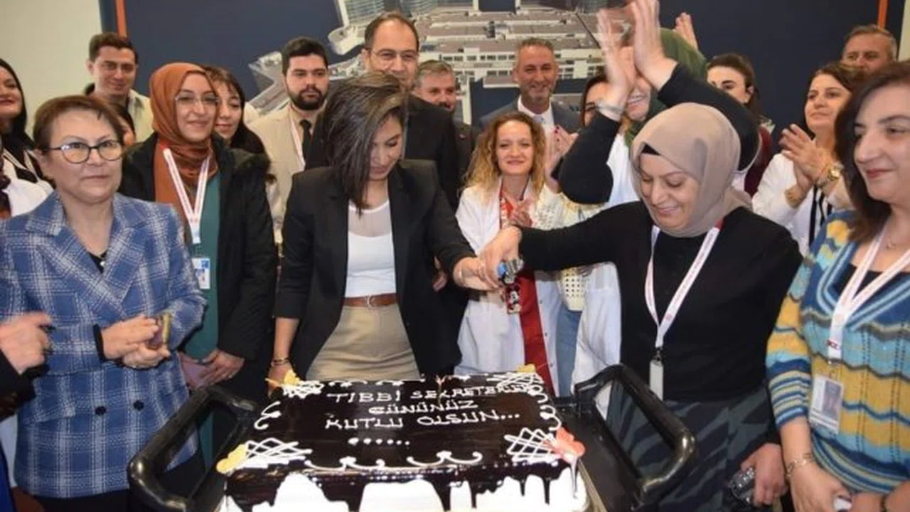 Erşan'ın konuşmasının ardından çiçek takdimi ile devam eden etkinlik, tıbbi sekreterler tarafından pasta kesilmesiyle sona erdi.