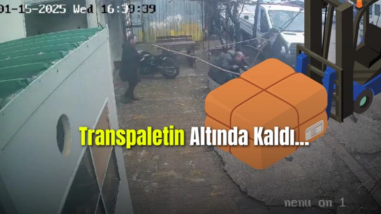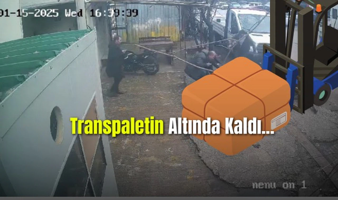 Bursa"da stajyer olarak çalışan öğrenci, transpaletin altında kaldı. O anlar kameraya yansırken, gencin yardımına mesai arkadaşları yetişti.