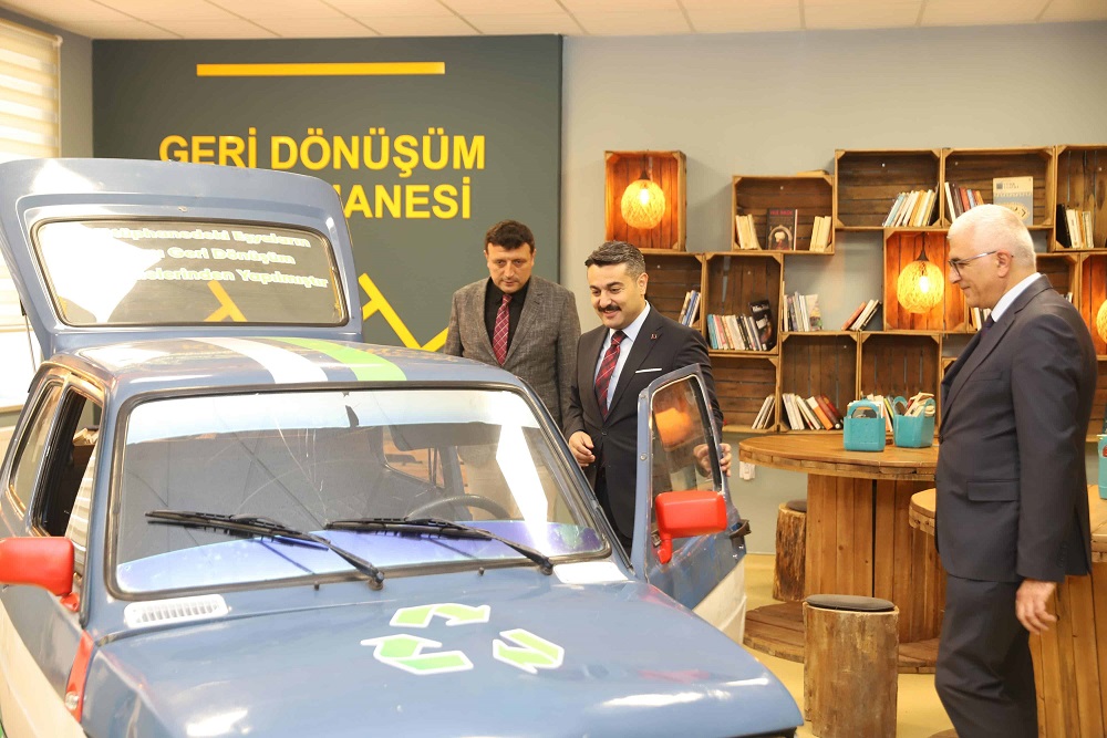 Sivas Millî Eğitim Müdürü Fatih Erdoğan, Şehit Ahmet Eyce Ticaret Mesleki ve Teknik Anadolu Lisesini ziyaret etti. Atık malzemelerle oluşturulan Geri Dönüşüm Kütüphanesi ile alan atölye ve laboratuvarlarını gezerek incelemelerde bulunan Erdoğan, öğrencilerle sohbet etti.