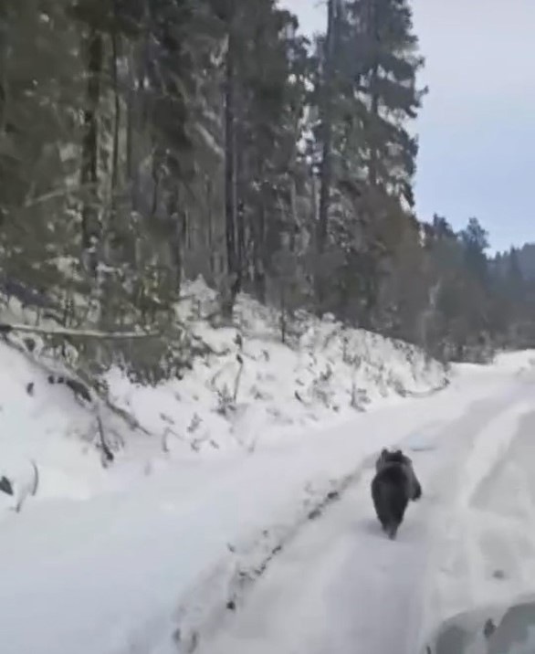 Kış turizminin önemli merkezlerinden Uludağ'da kış uykusuna yatamayan ayı, cep telefonu kamarasına yansıdı. Sevimli yavru ayının otomobilin önünden koşması, gülümsetti.