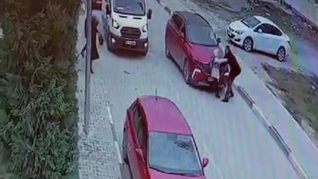 Baba ve kız çocuğu çevredekilerin yardımıyla yerden kaldırılırken sağlık durumlarının iyi olduğu öğrenildi. Kaza anı bir apartmanın güvenlik kamerasına yansıdı.