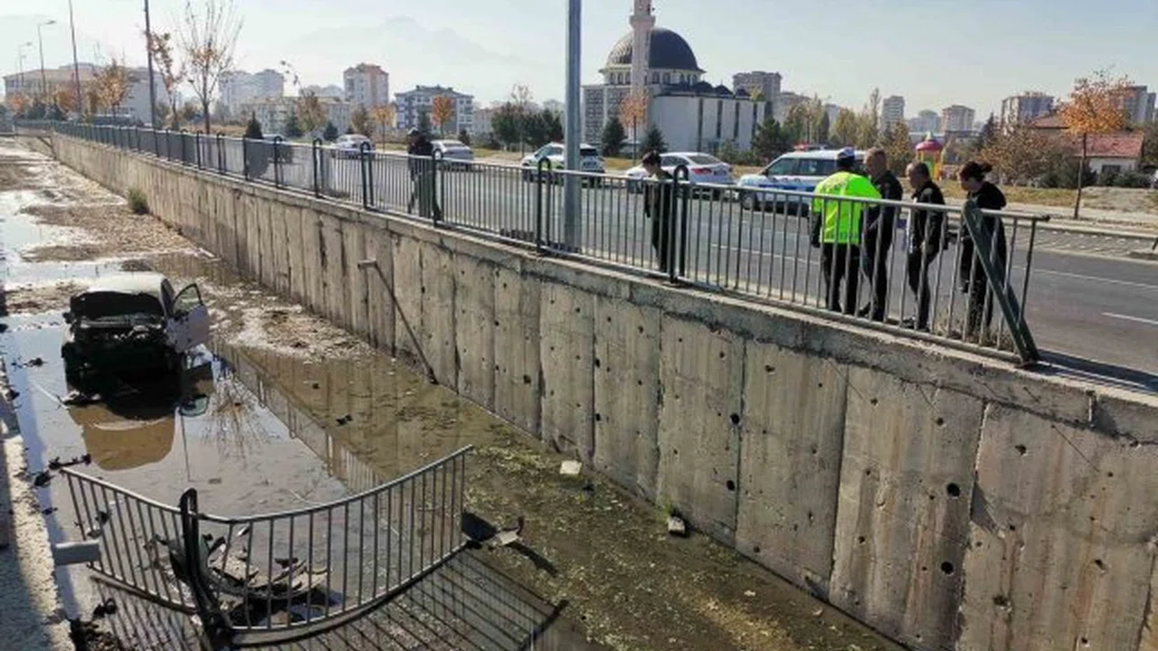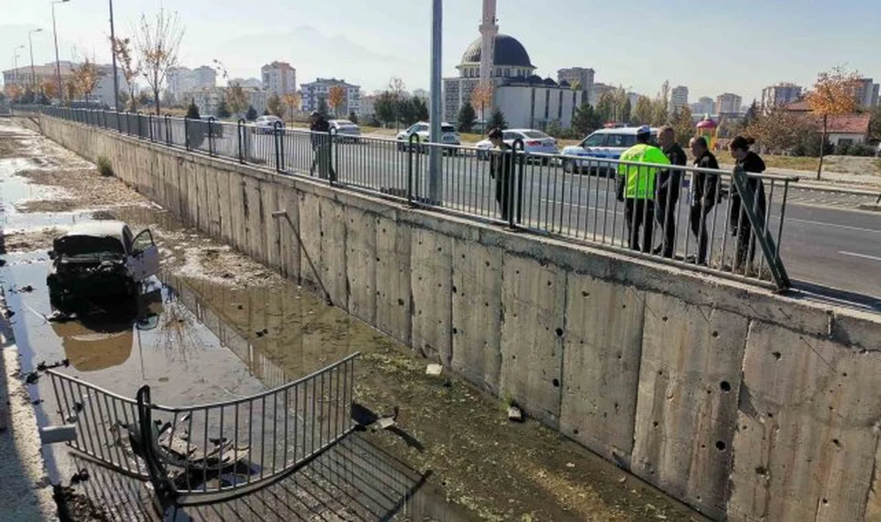 Kayseri'nin Melikgazi ilçesinde sürücüsünün direksiyon hakimiyetini kaybettiği otomobil bariyerleri aşarak kanala uçtu.