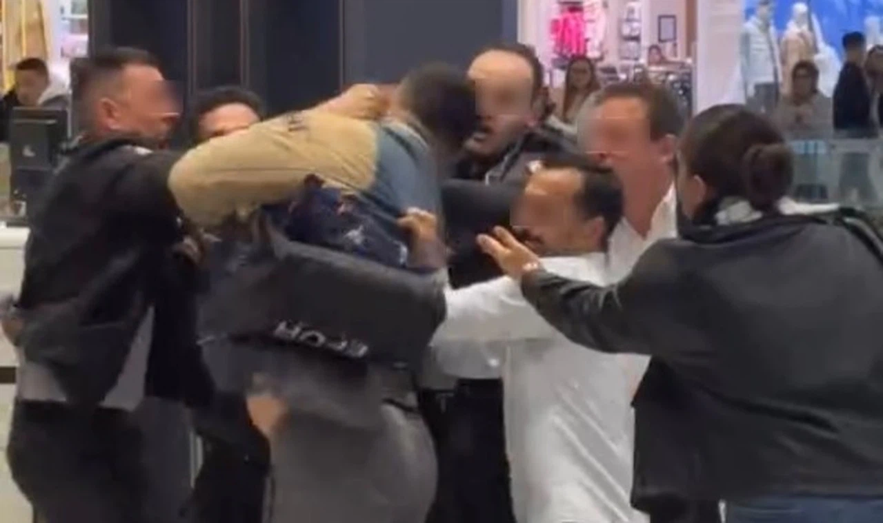 Bursa'nın Nilüfer ilçesinde bulunan Marka Alışveriş Merkezi'ne kız arkadaşıyla gezmeye gelen kişi, kız arkadaşını köpekle içeri almayan güvenlik görevlisiyle kavga etti.