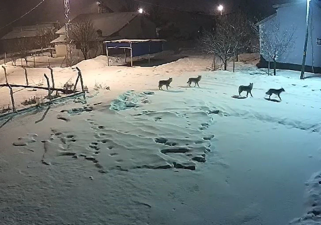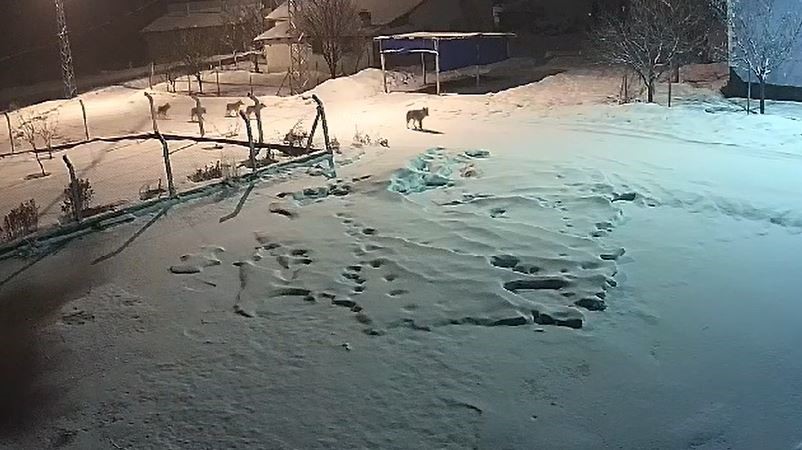 Soğuk havanın etkili olduğu Sivas’ta yiyecek bulmakta zorlanan ve halk dilinde 'canavar' olarak bilinen kurtlar, köye indi. 5 kurdun köye girişi, güvenlik kamerasına yansıdı.