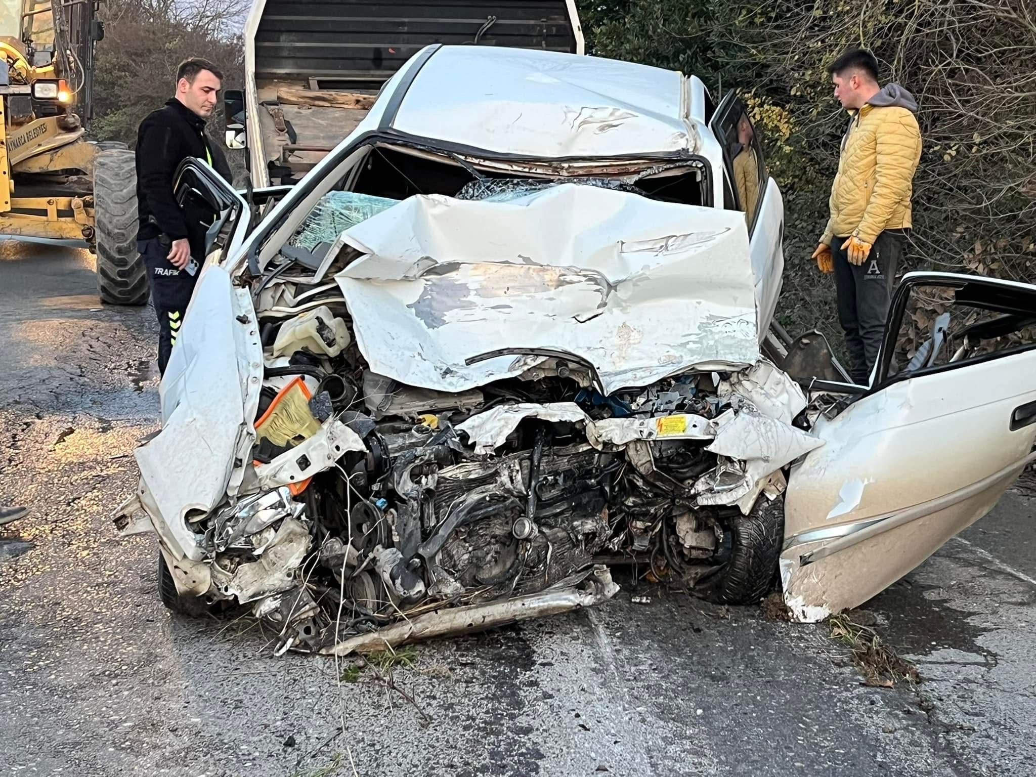 Sakarya'nın Kaynarca ilçesinde kamyon ile çarpışan otomobilin hurdaya döndüğü kazada anne ve oğlu hayatını kaybetti.