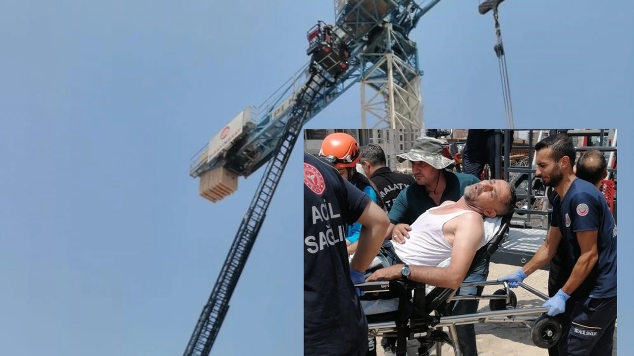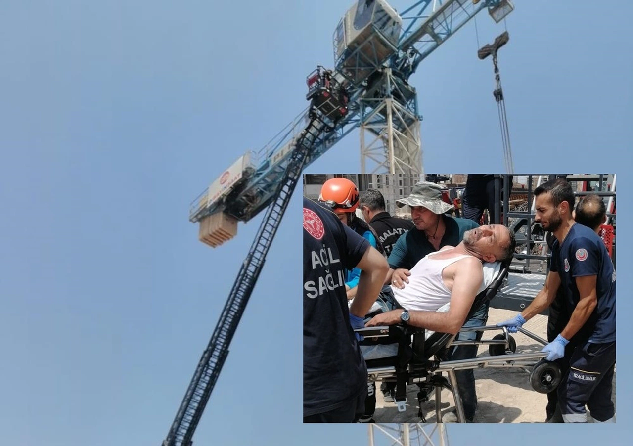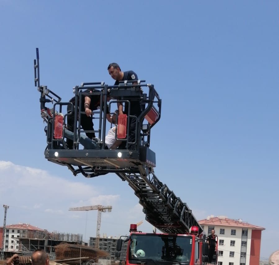 Malatya'nın Yeşilyurt ilçesinde bir inşaat şantiyesinde çalışan kule vinç operatörü, yaklaşık 30 metre yüksekte fenalaşınca imdadına itfaiye ekipleri yetişti.