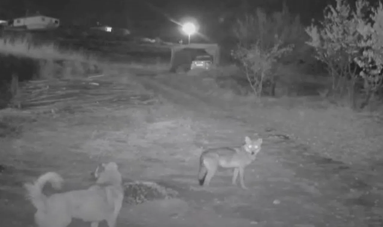 Kemah'ta yerleşim alanına kadar inen kurt, evin önünde bulunan kendisinden cüsse olarak büyük köpeği tuzağa çekmeye çalıştı. Saat 18. 30 sıralarında köpeğin yanına kadar yaklaşan kurt, köpeğin kendisine tepki vermemesi üzerine etrafında dolanarak tuzak kurdu. Köpeği üst tarafta gizlenen kurtların yanına çekmeye çalışan kurdun kurnazlığı güvenlik kamerasına yansıdı.