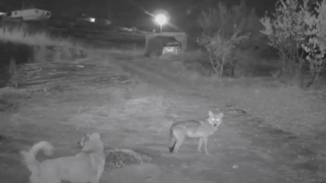 Erzincan'ın Kemah ilçesinde kurdun köpeği tuzağa çekmesi güvenlik kamerasına yansıdı.