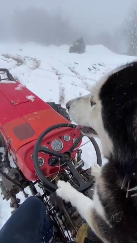 Traktör sevgisine hayran kaldığı kurda, karda metrelerce traktör kullandıran sahibi o anları cep telefonuyla kayda aldı. Görüntülerde, kar üzerinde seyir halindeki traktörün direksiyonunda köpeğin olduğu anlar yer aldı.