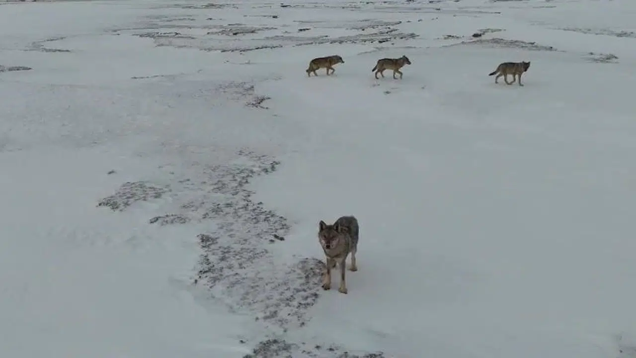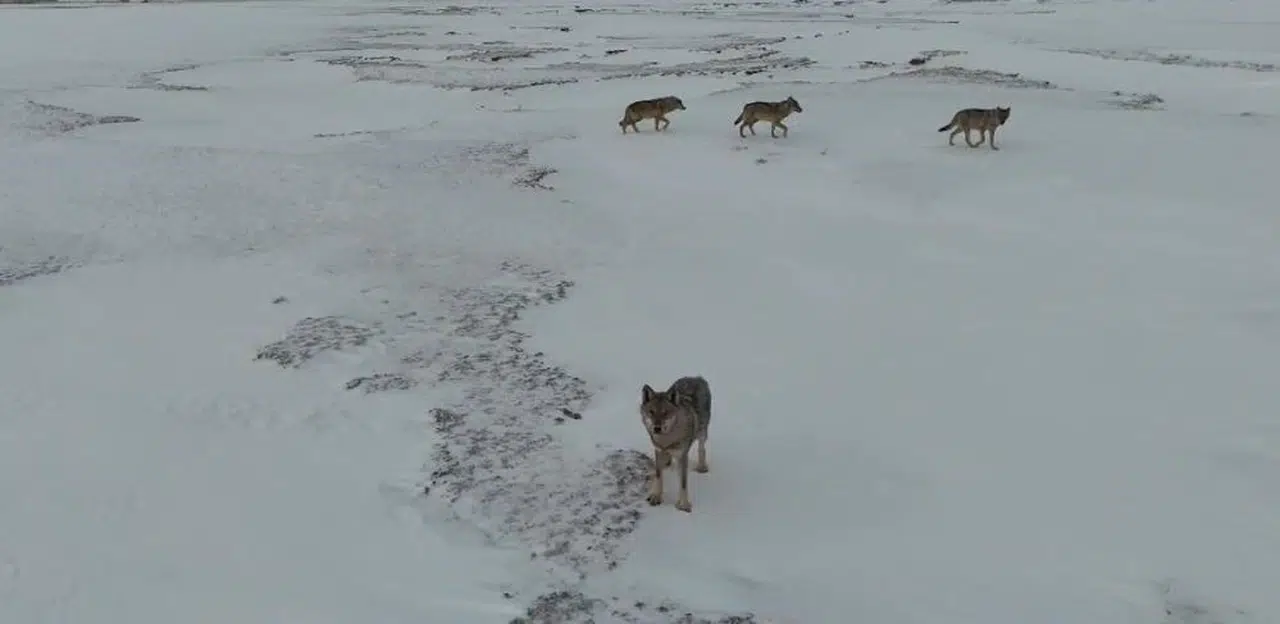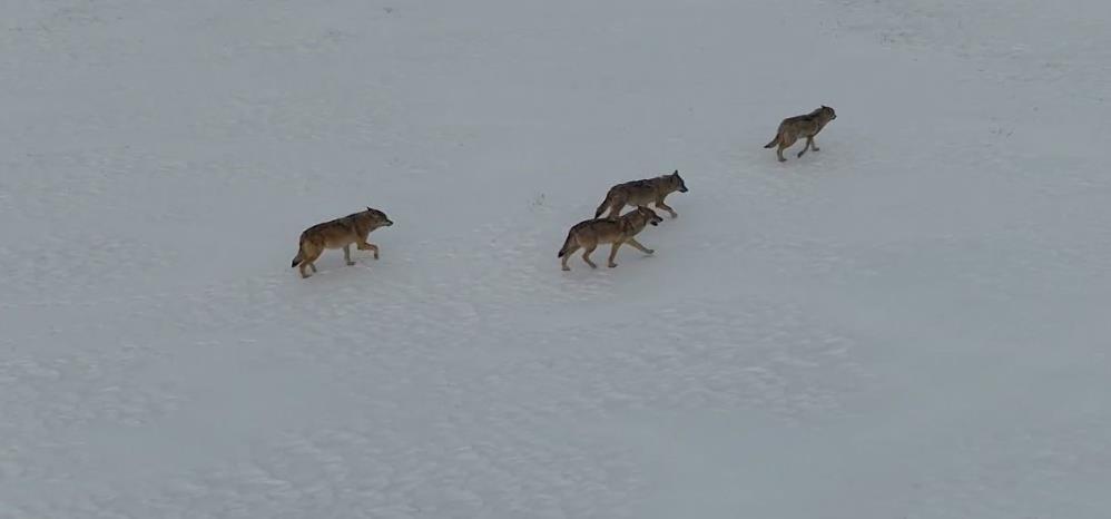 Kar yağışıyla beyaza bürünen Sivas'ta soğuk hava etkisini gösterdi. Hava sıcaklığının sıfırın altında 15 dereceye kadar düştüğü kentte yaban hayatı da etkilendi. Altınyayla ilçesinde yiyecek bulmak için boş araziye inen 4 kurt dronla havadan görüntülendi. Arazide gezinen sürü bir süre sonra gözden kayboldu.