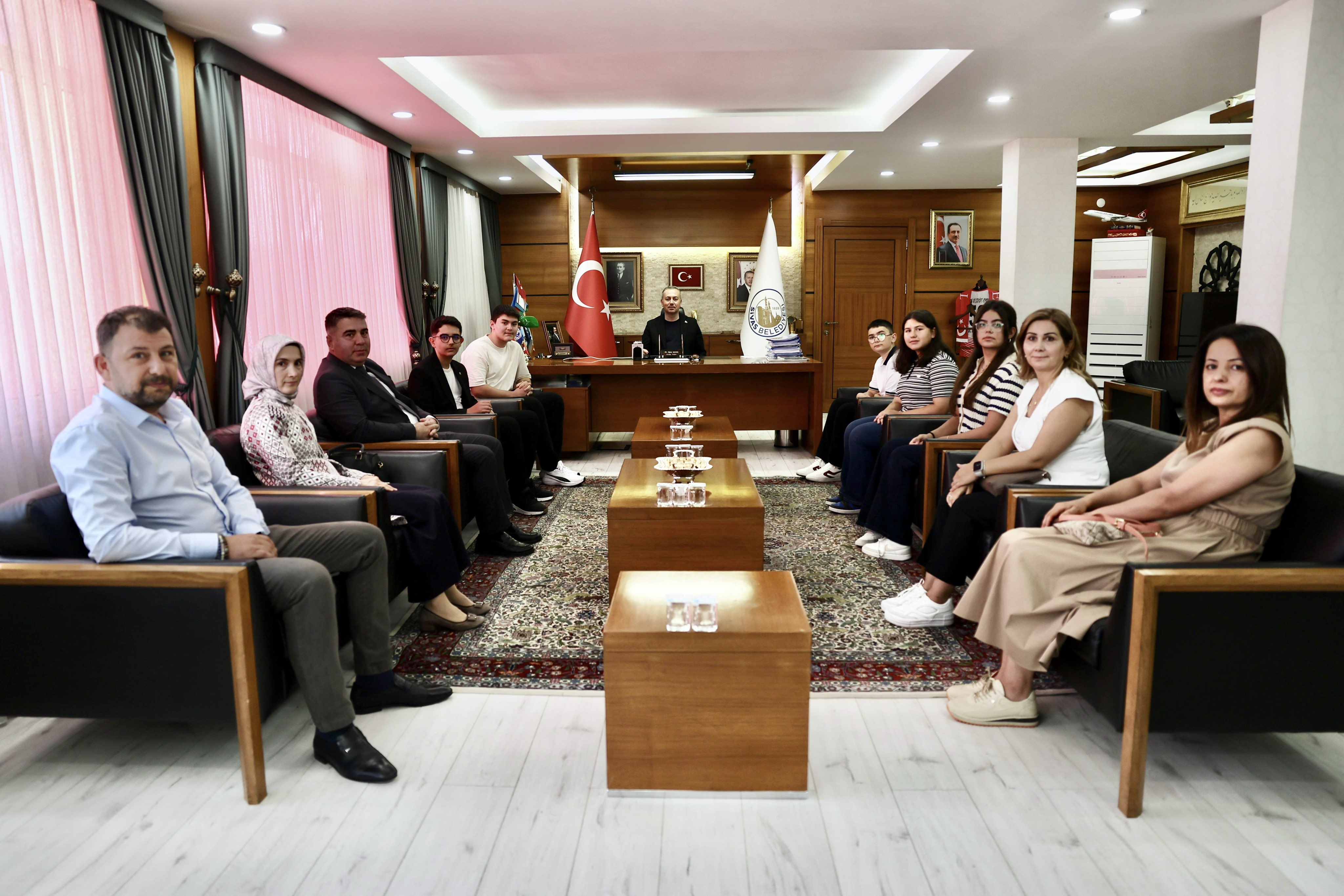 Sivas Belediye Başkanı Dr. Adem Uzun, öğrencileri makamında misafir etti. Gençleri ve onları destekleyen ailelerini kutlayan Başkan Uzun, “Sivas’ın eğitimdeki gücünü bir kez daha gözler önüne serdiniz” ifadelerini kullandı. Ziyaret sırasında öğrencilere çeyrek altın takdim edildi.