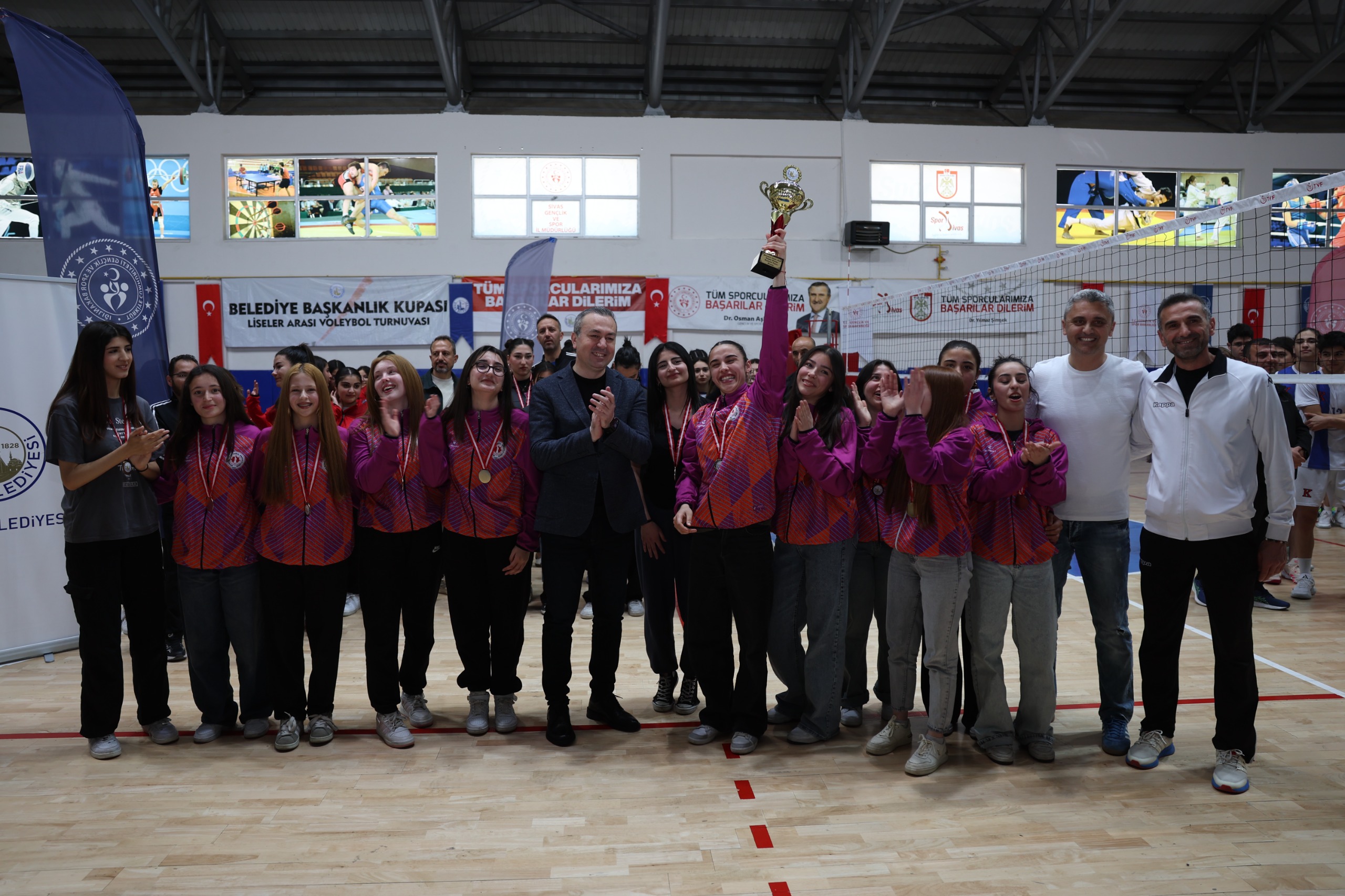 Sivas Belediyesi tarafından 07-17 Nisan tarihleri arasında düzenlenen Geleneksel Belediye Başkanlık Kupası Liseler Arası Voleybol Turnuvası, büyük bir coşkuyla tamamlandı. Mecnun Otyakmaz Spor Salonu'nda gerçekleştirilen turnuvaya 28 okuldan 19 kız ve 9 erkek takımı olmak üzere toplam 340 sporcu katıldı. Final karşılaşması, TED Koleji ile Furkan Peker Anadolu Lisesi arasında oynandı.
