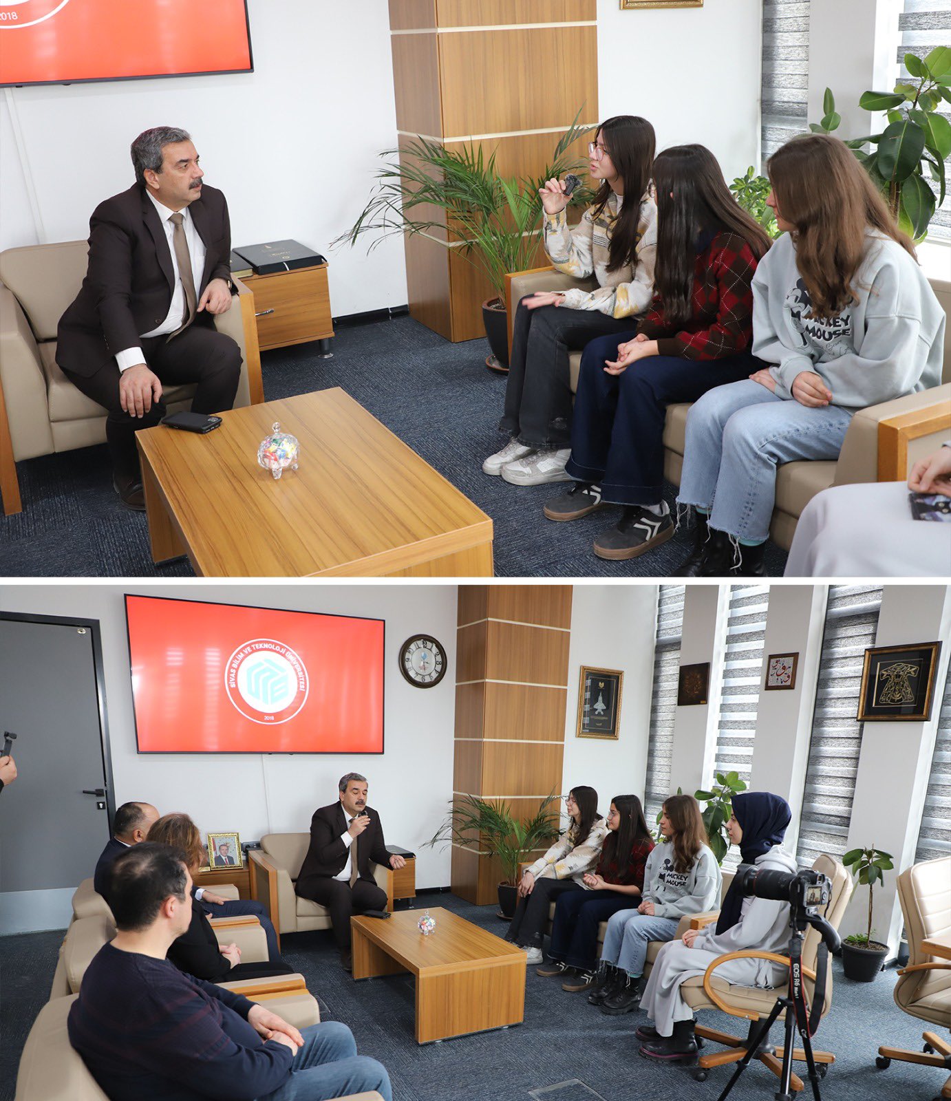 Okul müdürü Halil Duman ile birlikte Rektör Prof. Dr. Mehmet Kul ile görüşen öğrenciler, proje kapsamında belirlenen "Makam ile Sohbet" etkinliğini gerçekleştirdi. Öğrenciler, ziyaret sırasında sosyal sorumluluk çalışmaları hakkında bilgi aldı ve projeye ilişkin düşüncelerini paylaştı.