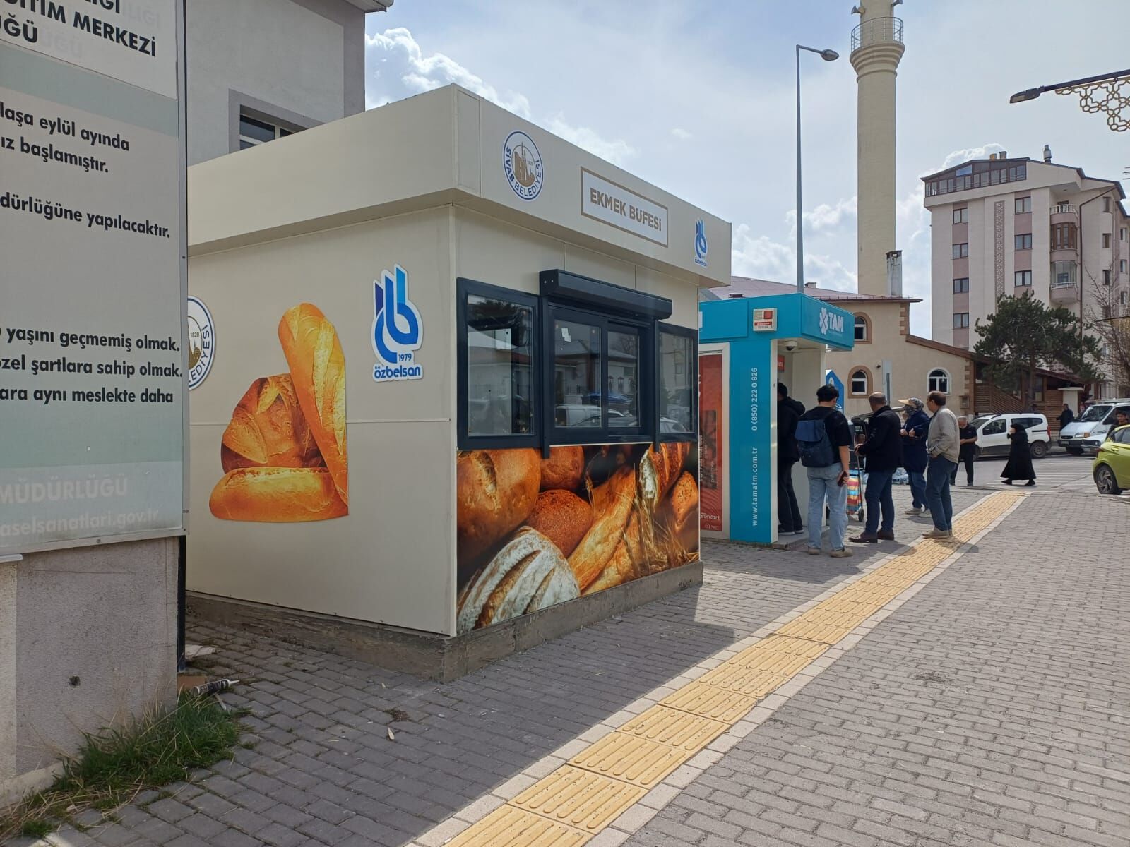 Sivas Belediyesi ve Özbelsan A.Ş. ile yürütülen koordineli çalışmalar kısa sürede meyvesini verdi. Özbelsan Genel Müdürü Yunus Kantar ile yapılan görüşmeler neticesinde, büfenin en verimli kullanılacağı nokta belirlendi. Yeni ekmek büfesi, mahalle sakinlerinin yoğun olarak kullandığı Cuma Pazarı’nın hemen alt kısmında, Halk Eğitim Merkezi yanındaki yerini aldı. Montajı tamamlanan büfede çok kısa bir süre içerisinde ekmek satışlarının başlaması bekleniyor.