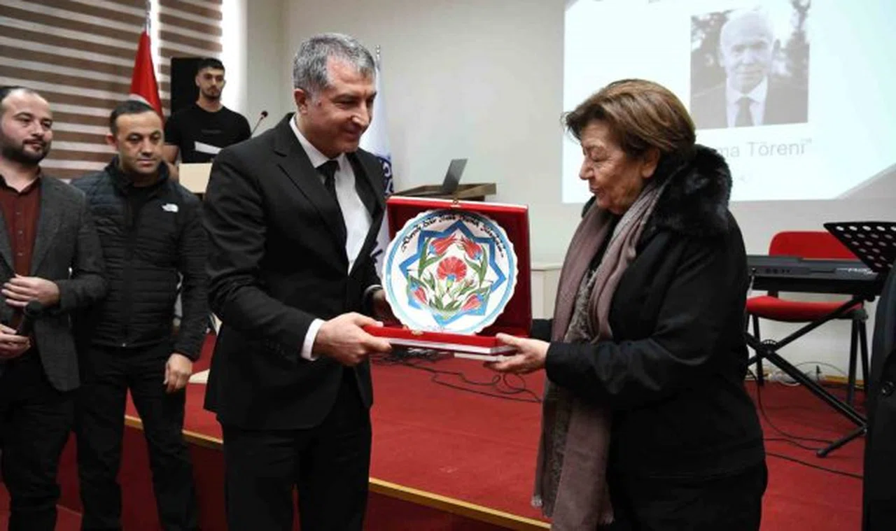 Rektör Yardımcısı Prof. Dr. Orhan Gündüz ve Darende Belediye Başkanı Alican Bozkurt tarafından üniversiteye katkıları nedeniyle Ilıcak ailesine teşekkür mahiyetinde olmak üzere Bekir Ilıcak'ın eşi Ayşe Ilıcak'a Meslek Yüksekokulu öğrencilerinin, meslek yüksekokulu seramik atölyesinde kendi elleriyle üretip işlemiş oldukları seramik tabak takdim edildi.