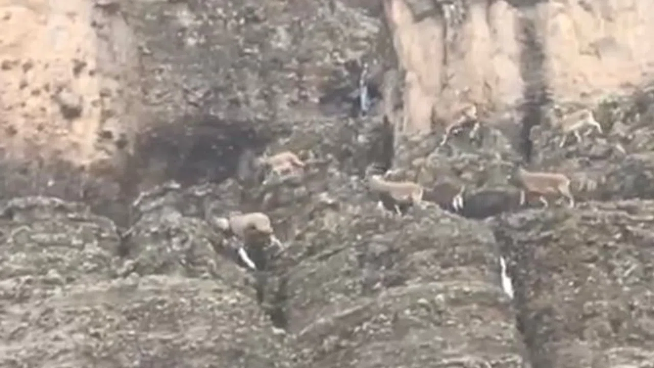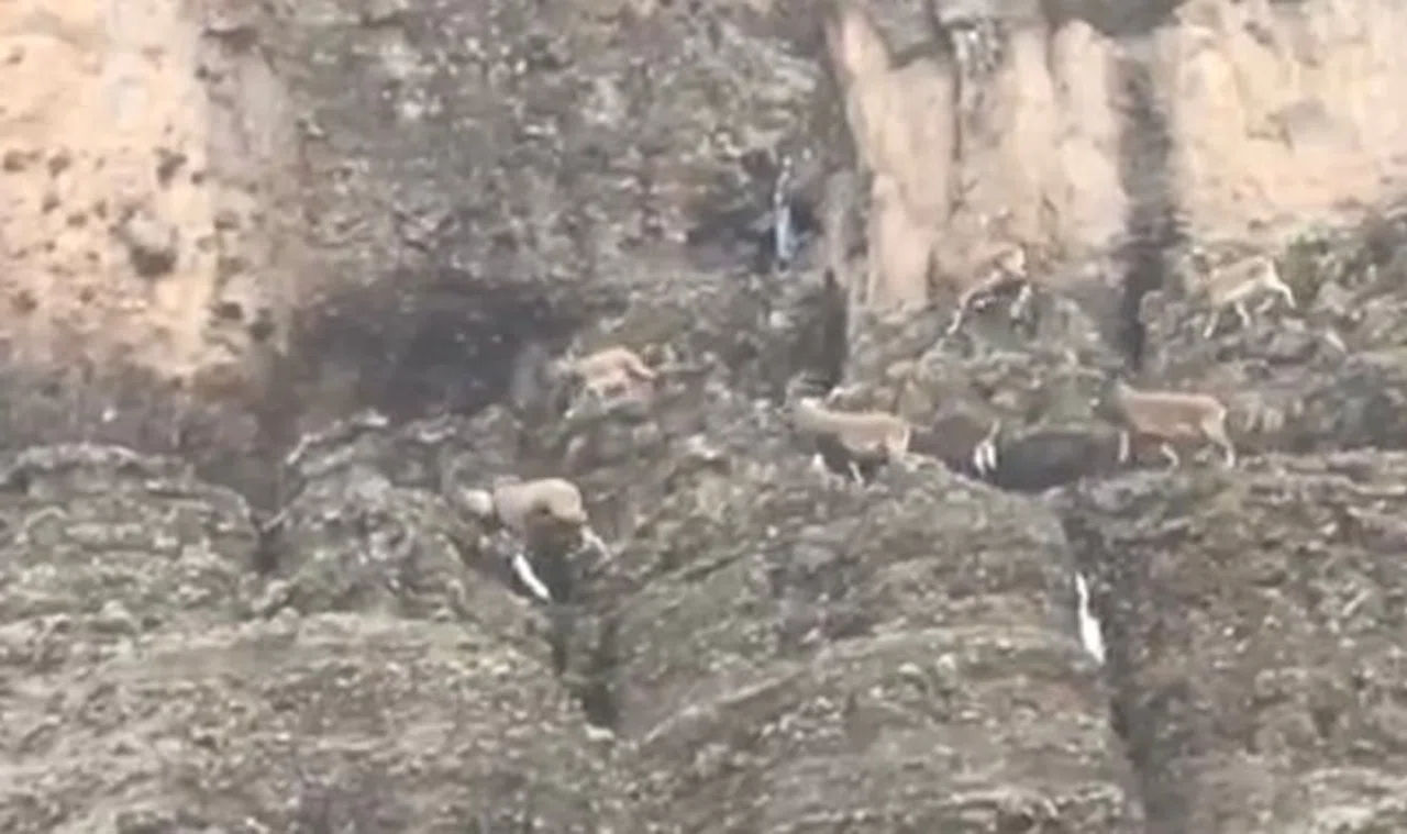 Malatya'da nesli tehlike altında olan yaban keçileri, yüksek dağlık kesimlerde sürü halinde görüntülendi.
