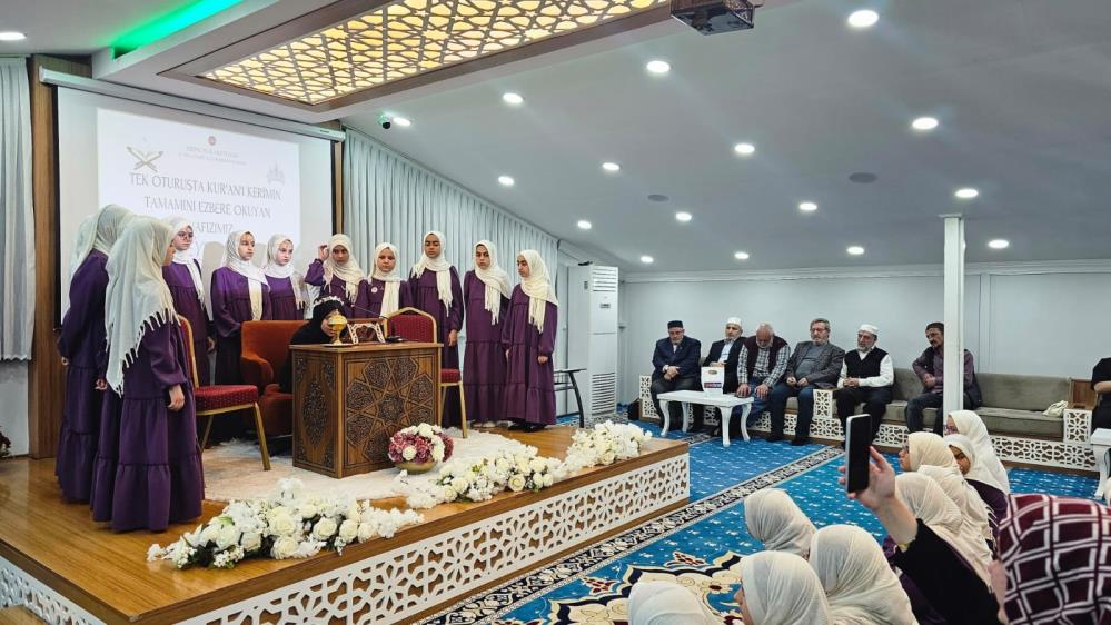 Hafızlık eğitimini tamamlayan Hafize Sümeyye Güneş (13), sabah namazı öncesi 03.00 da başlayarak akşam namazı sonrası 30 cüzün tamamını ezberden okuyarak hatim etti. Hatim duası İl Müftü Vekili Medet Şahin, kurs öğretmenleri ve Kur’an Kursu talebelerinin katılımı ile duası alınarak hatim yapan Hafize Sümeyye Güneş’e hafızlık tacı takıldı.