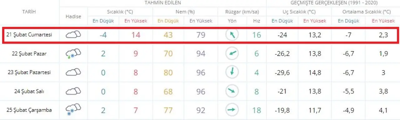 Meteoroloji verilerine yansıyan geçmiş yılların istatistikleri, 21 Şubat’ta yaşanacak olan bu ısınmanın ne kadar sıra dışı olduğunu kanıtlıyor. 1991 ile 2020 yılları arasındaki verilere bakıldığında, Sivas’ta bu tarihte gerçekleşen en yüksek sıcaklık 13,2 derece olarak kayıtlara geçmişti. Cumartesi günü beklenen 14 derecelik tahmin, Sivas’ın tarihsel ortalamalarının üzerine çıkılacağını ve Şubat ayı için rekor bir ısınmanın yaşanabileceğini gösteriyor.
