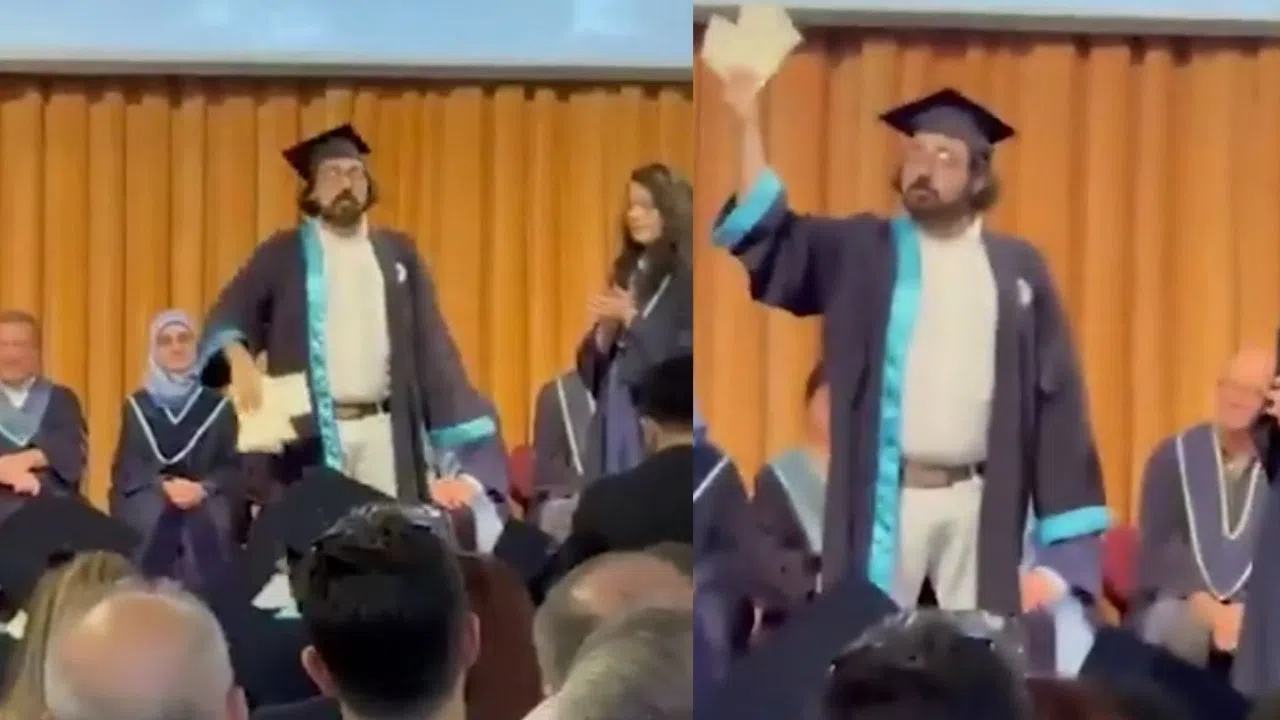 Doruk Dörücü'nün bu hareketi ve sözleri, töreni izleyenler arasında şaşkınlık yaratırken, mezuniyete katılan bazı öğrenci velilerinin duruma tepki gösterdiği görüldü.